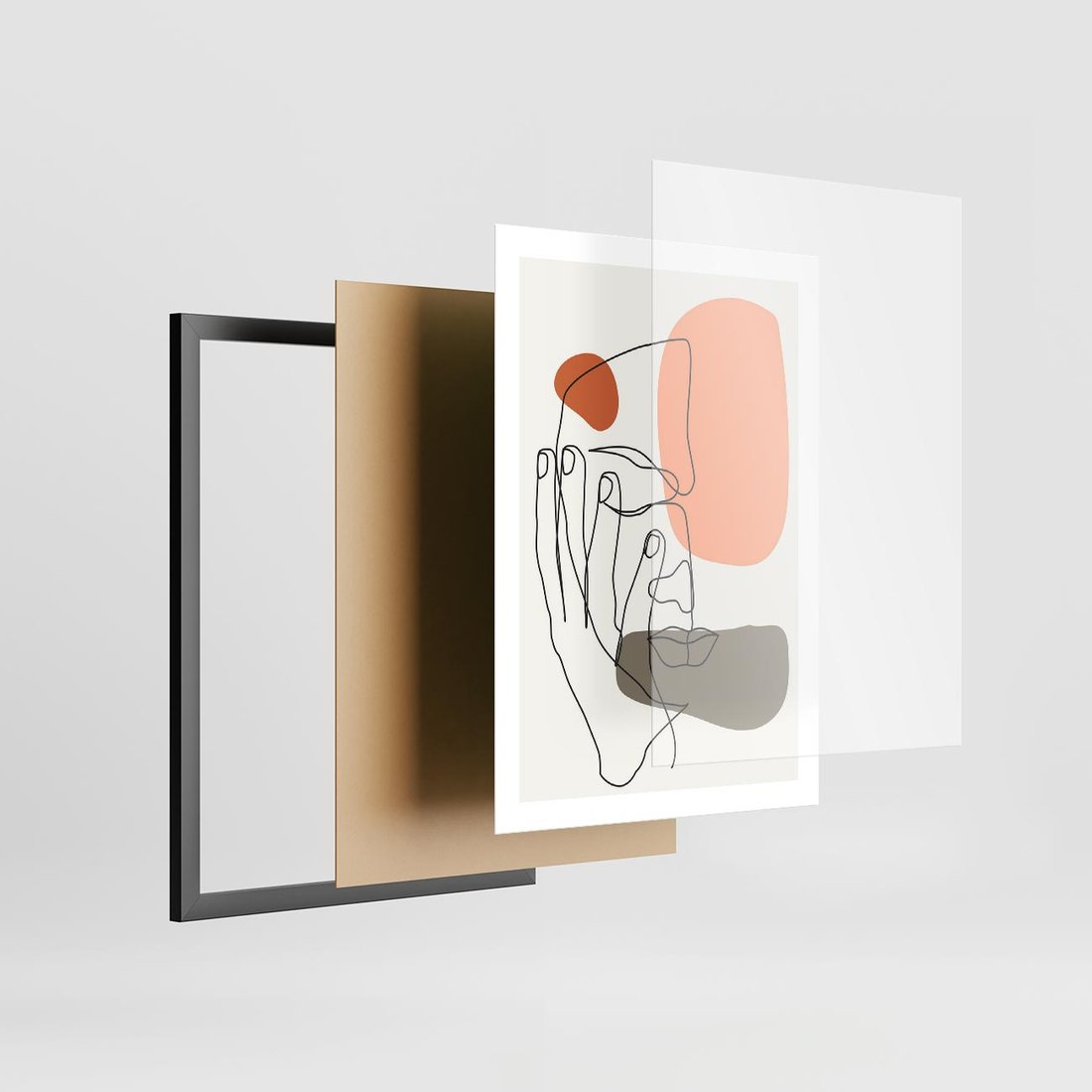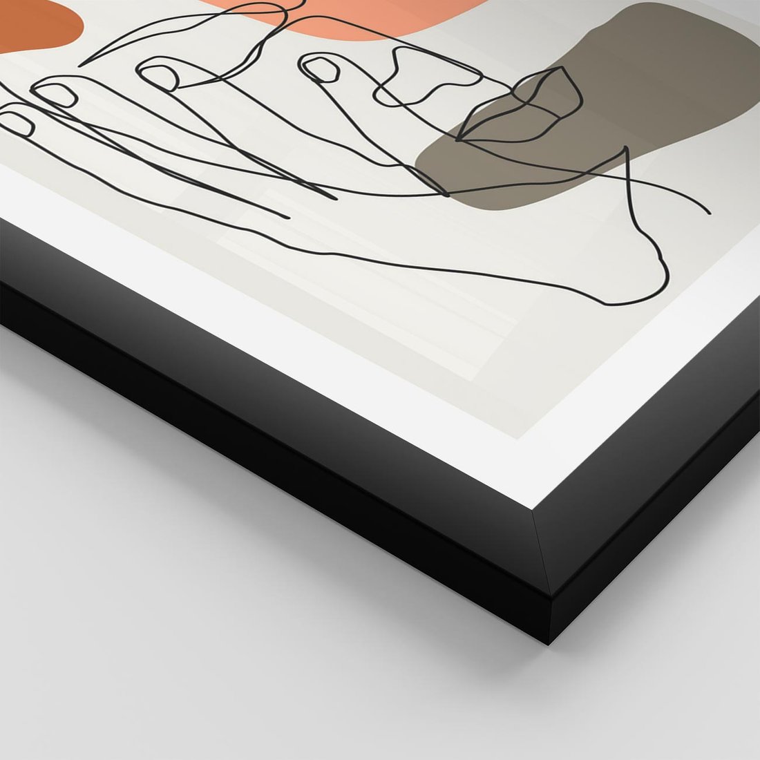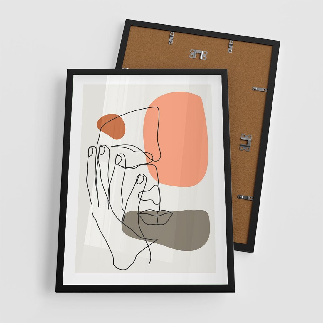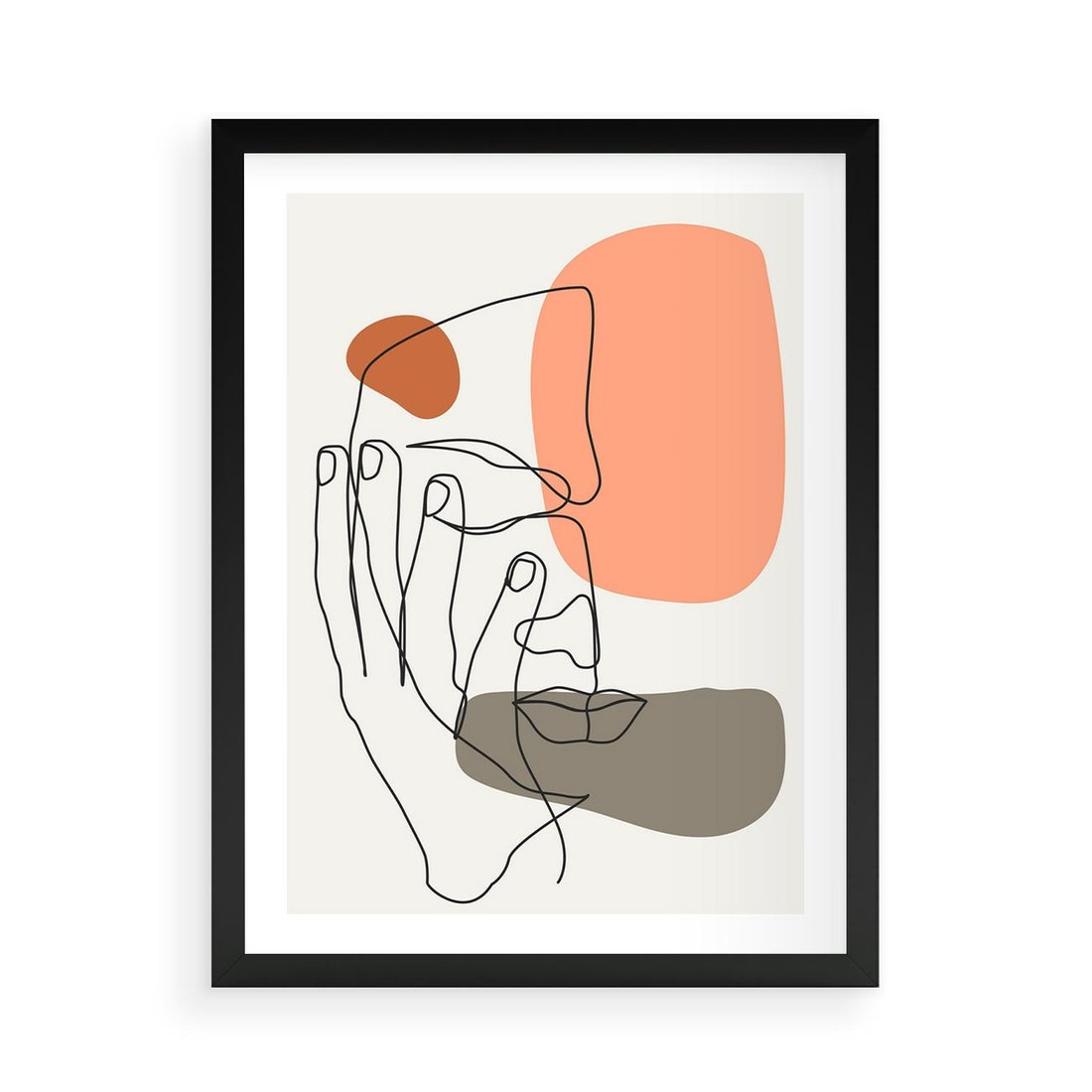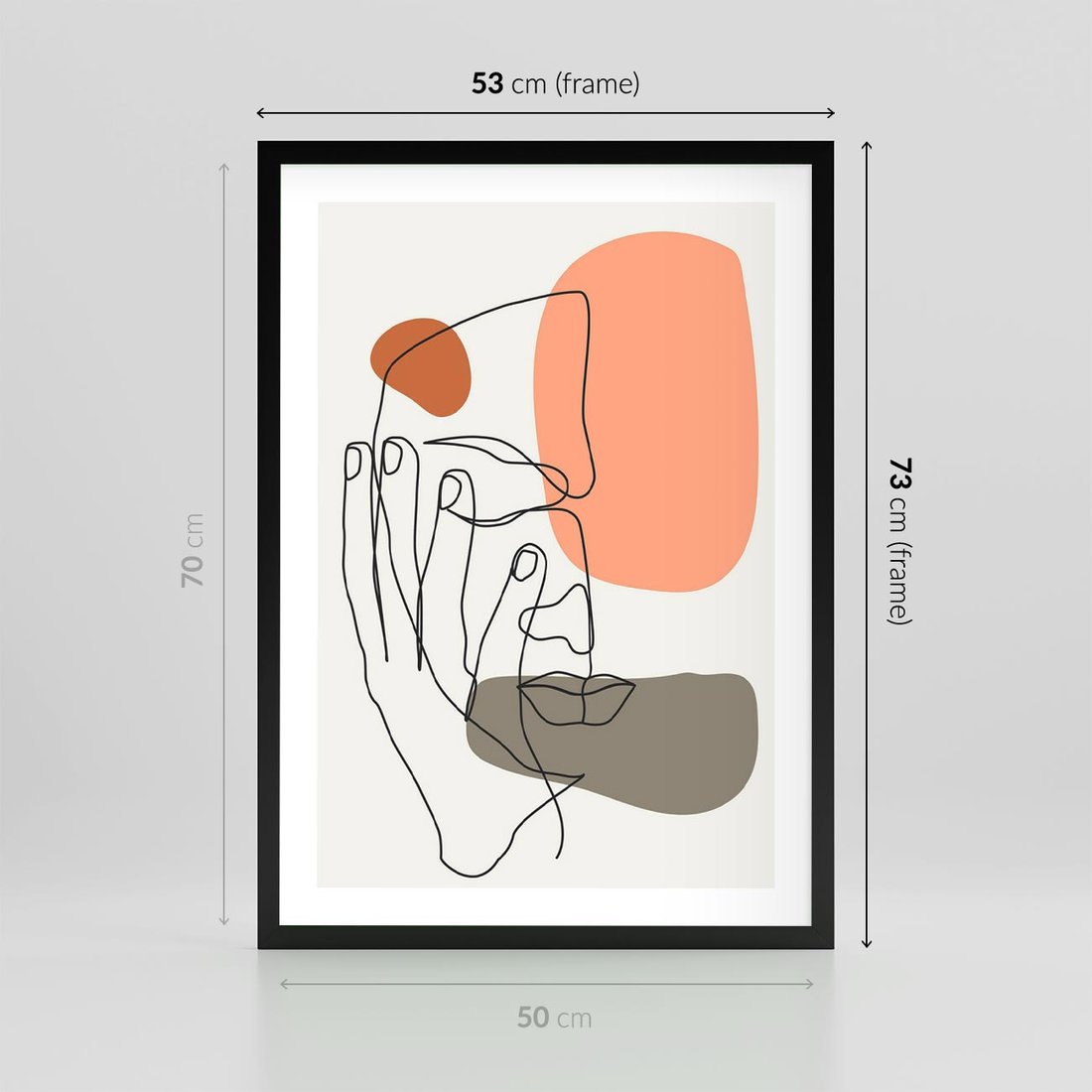 Plakat w ramie 50x70 - Ekspresja Kolorów: Szkic - one line szkic twarzy, kolorowe plamy - rama czarna