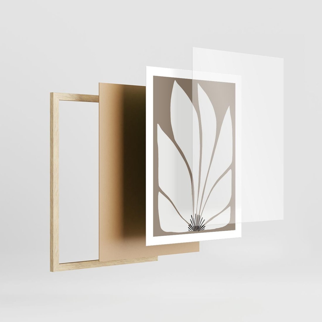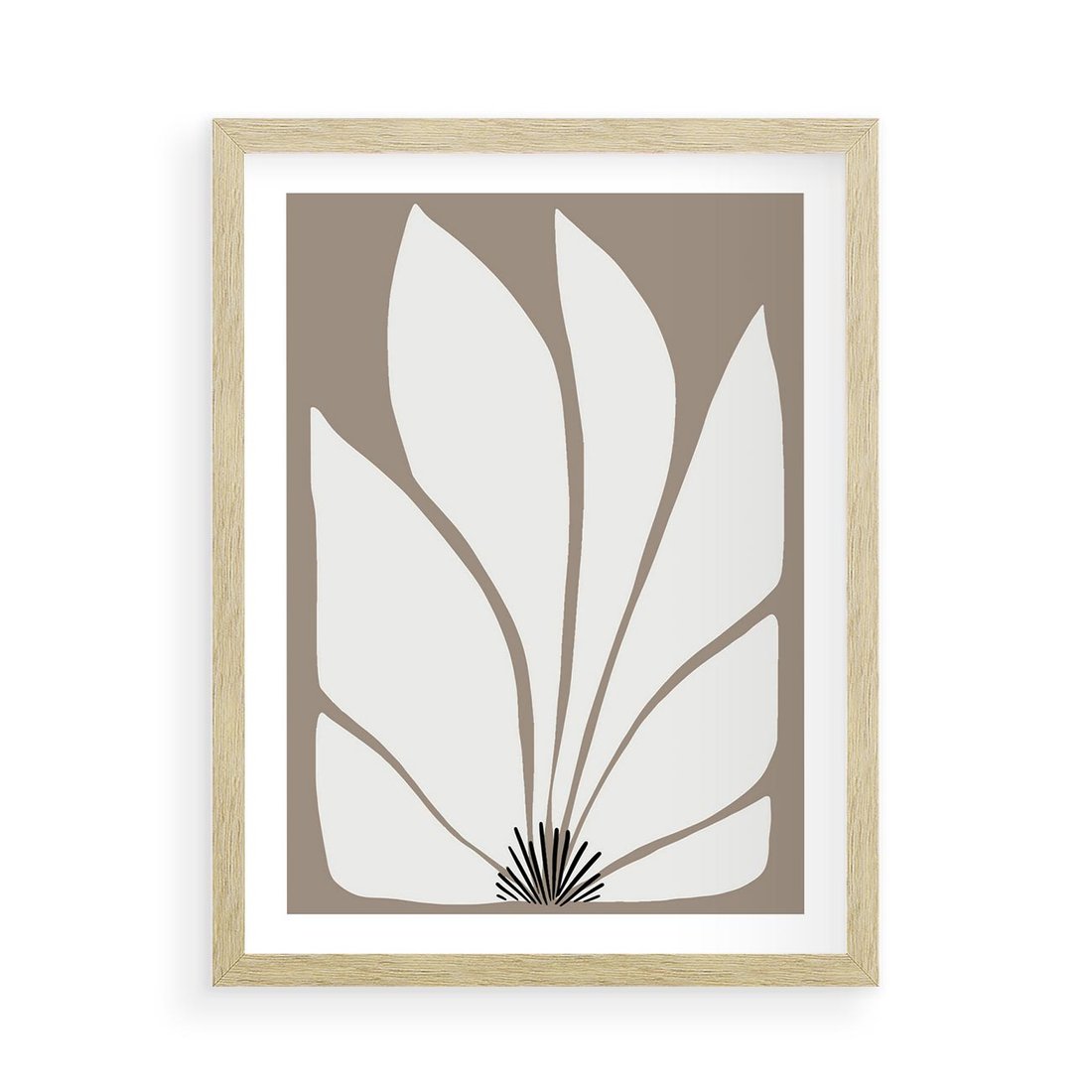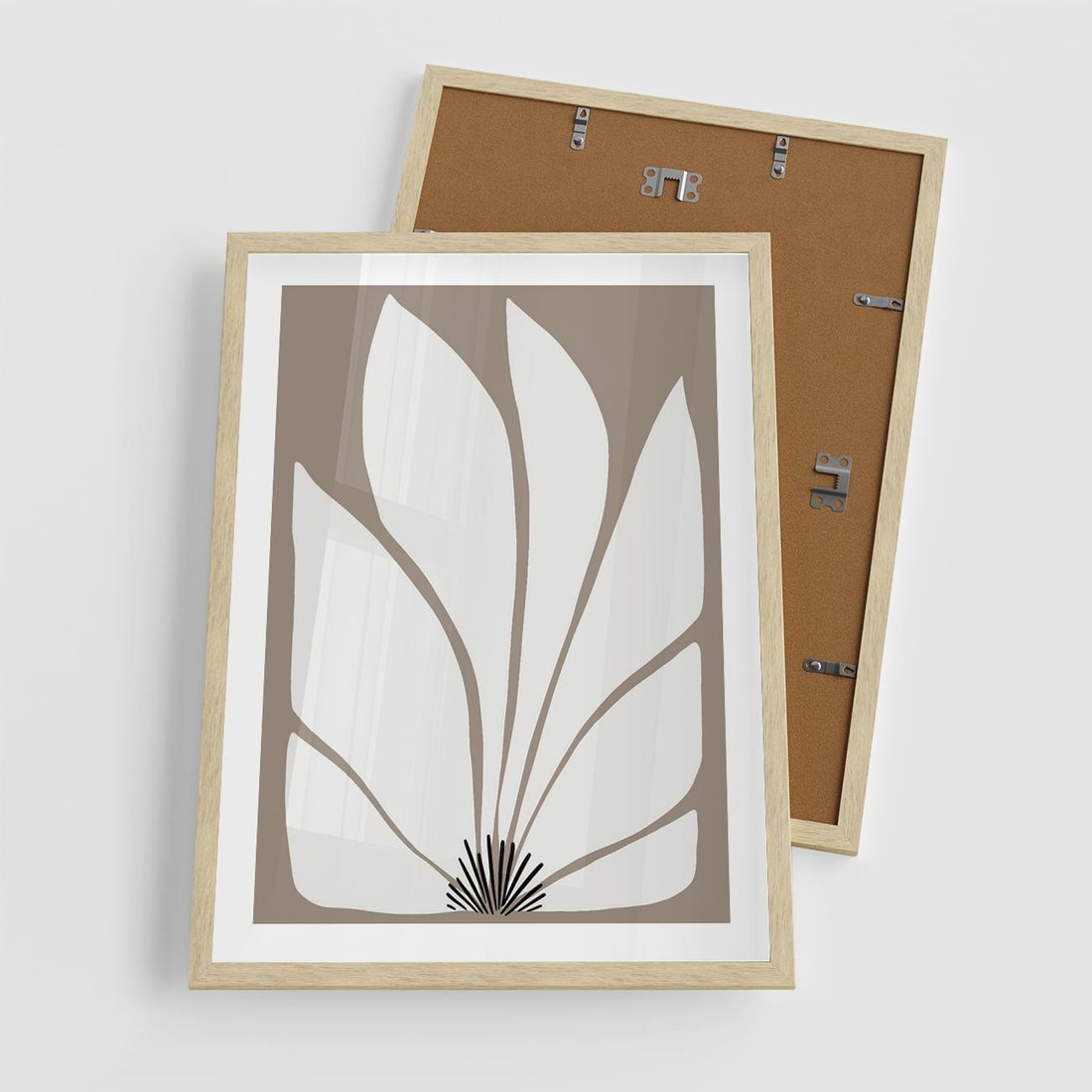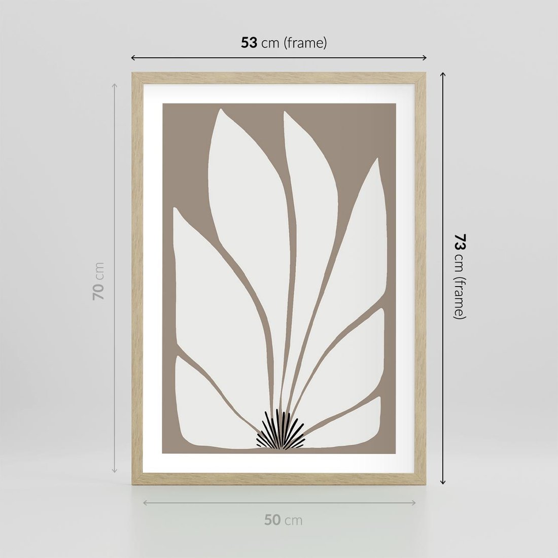 Plakat w ramie 50x70 - Ekspresyjne Kontury - abstrakcyjny kwiat, beże i brązy - rama drewno