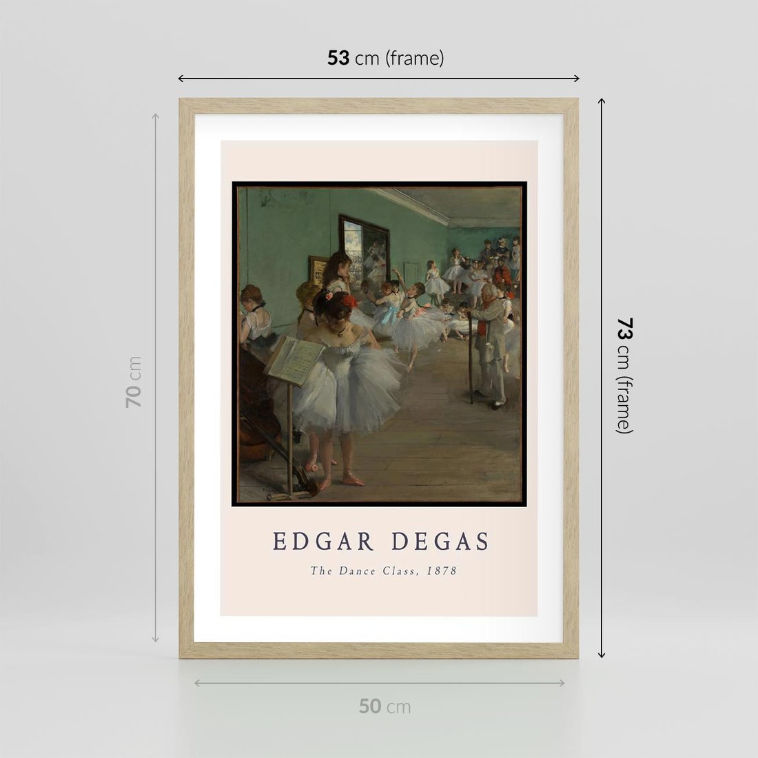 Na obrazie widoczna jest reprodukcja słynnego dzieła Edgara Degasa, przedstawiająca baletnice. Obraz zawiera także elementy typografii, co nadaje mu charakter plakatu. Dzięki swojemu tematowi i stylowi, ten plakat z reprodukcją obrazu Edgara Degasa doskonale pasuje do wnętrza o tematyce artystycznej lub klasycznej.