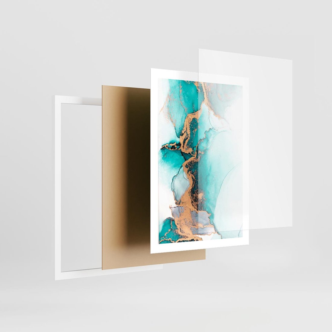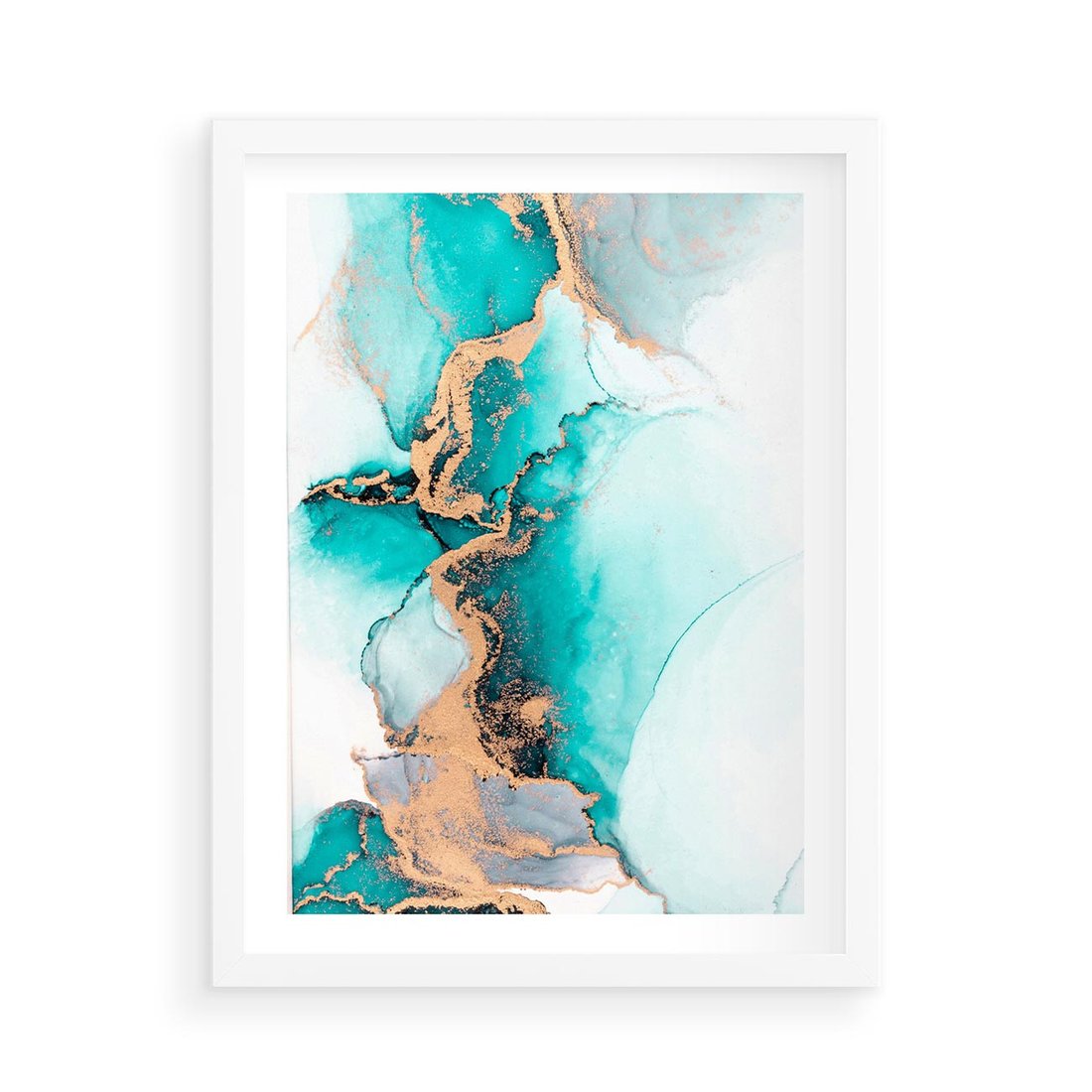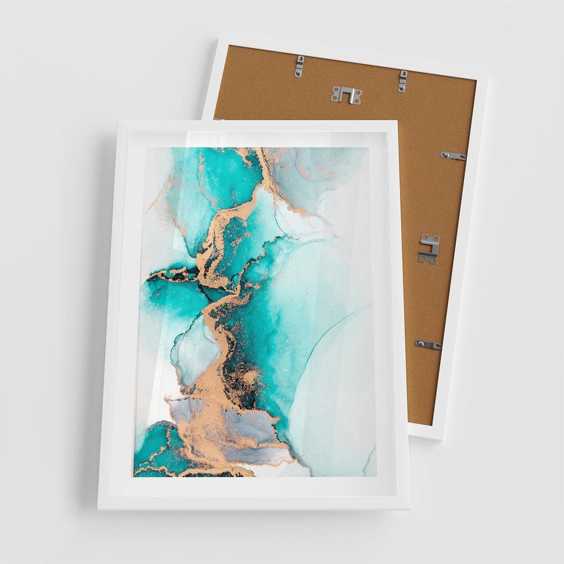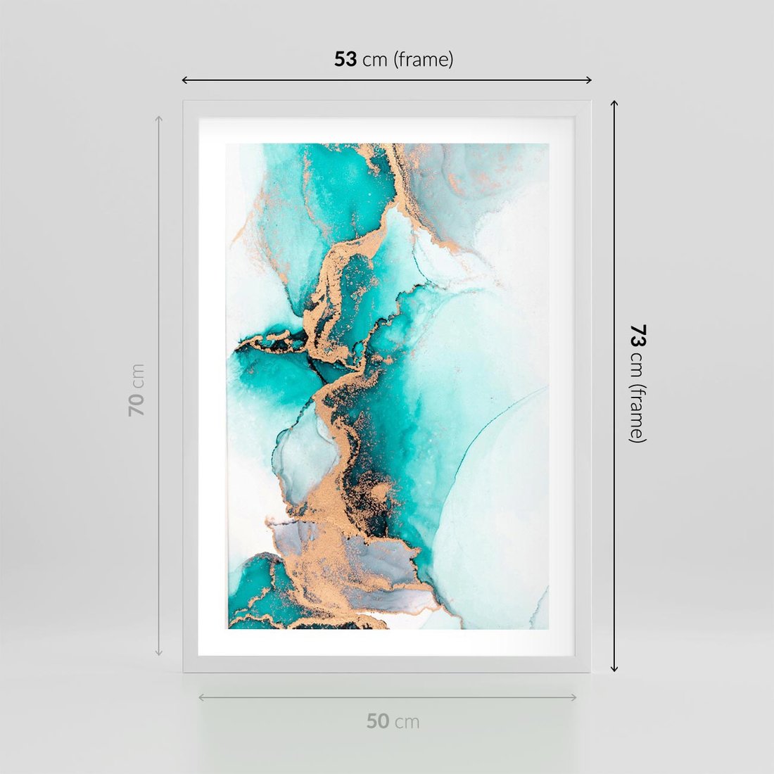 Plakat w ramie 50x70 - Elegancja i Subtelność - marmur, złoto - rama biała
