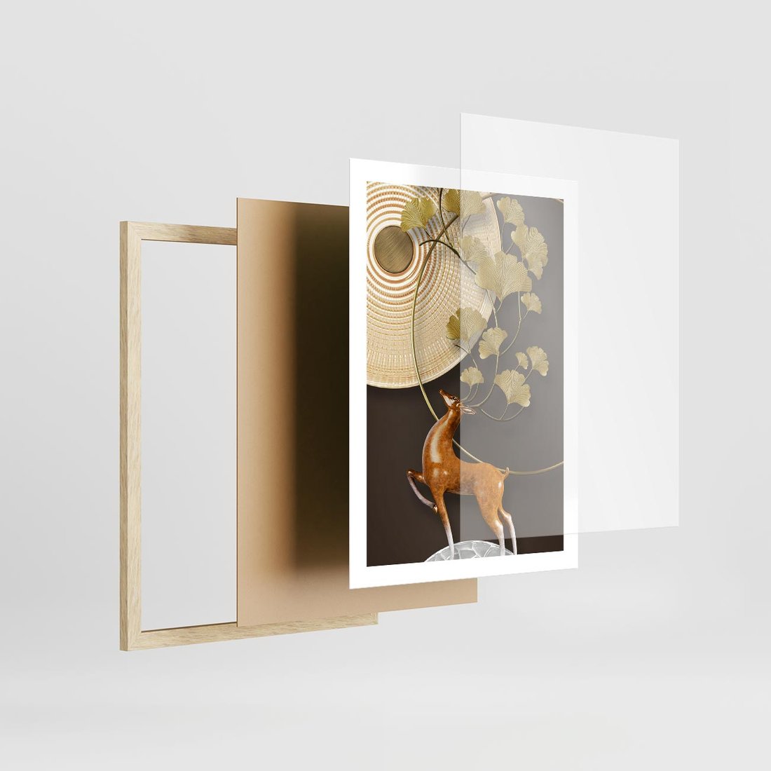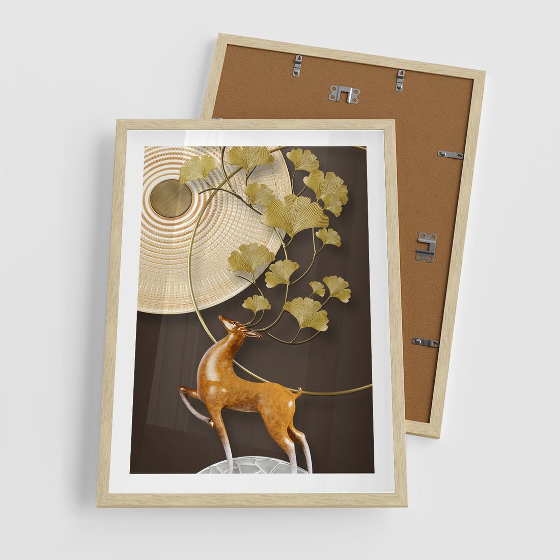 Plakat w ramie 50x70 - Elegancja i Tradycja - złote, liście - rama drewno