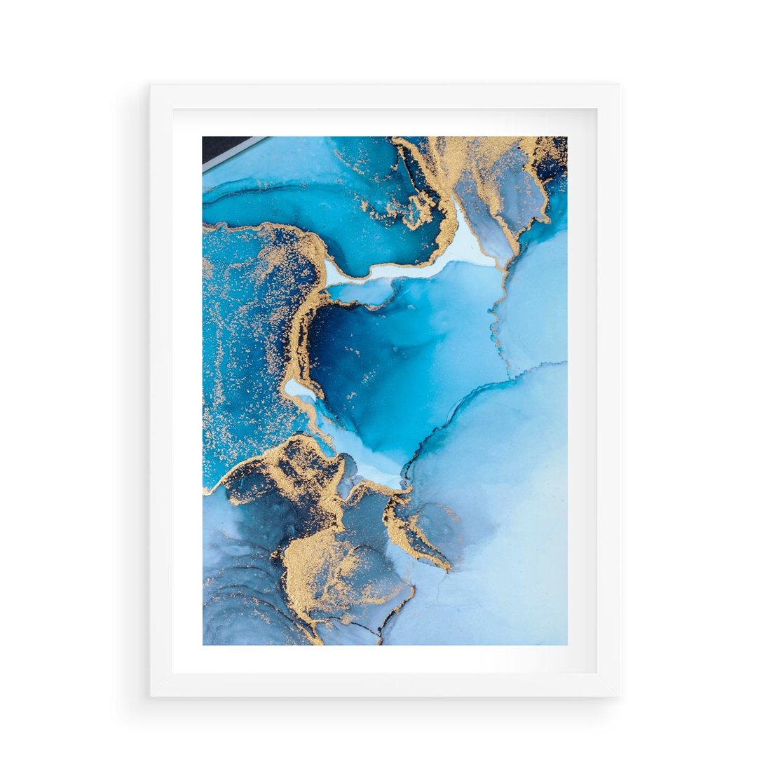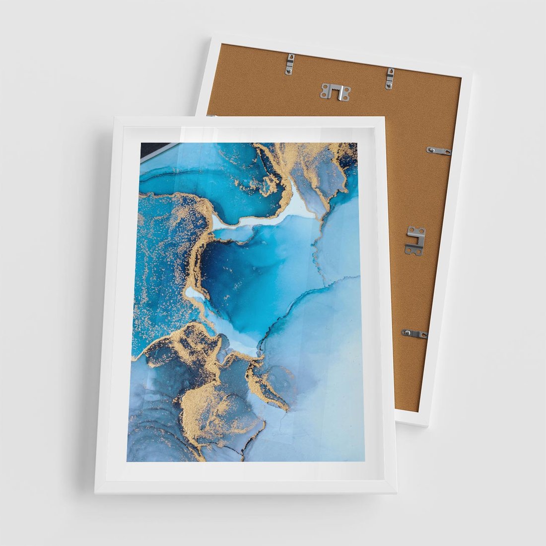 Plakat w ramie 50x70 - Elegancja i Wyrafinowanie - marmur, złoto - rama biała