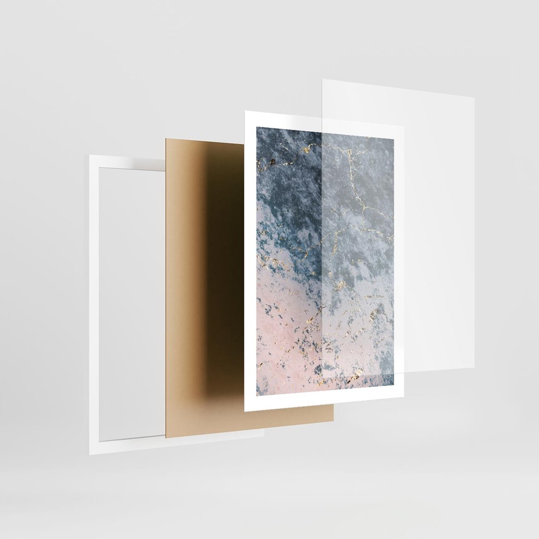 Plakat w ramie 50x70 - Elegancja i Wyrafinowanie - marmur, złoto - rama biała