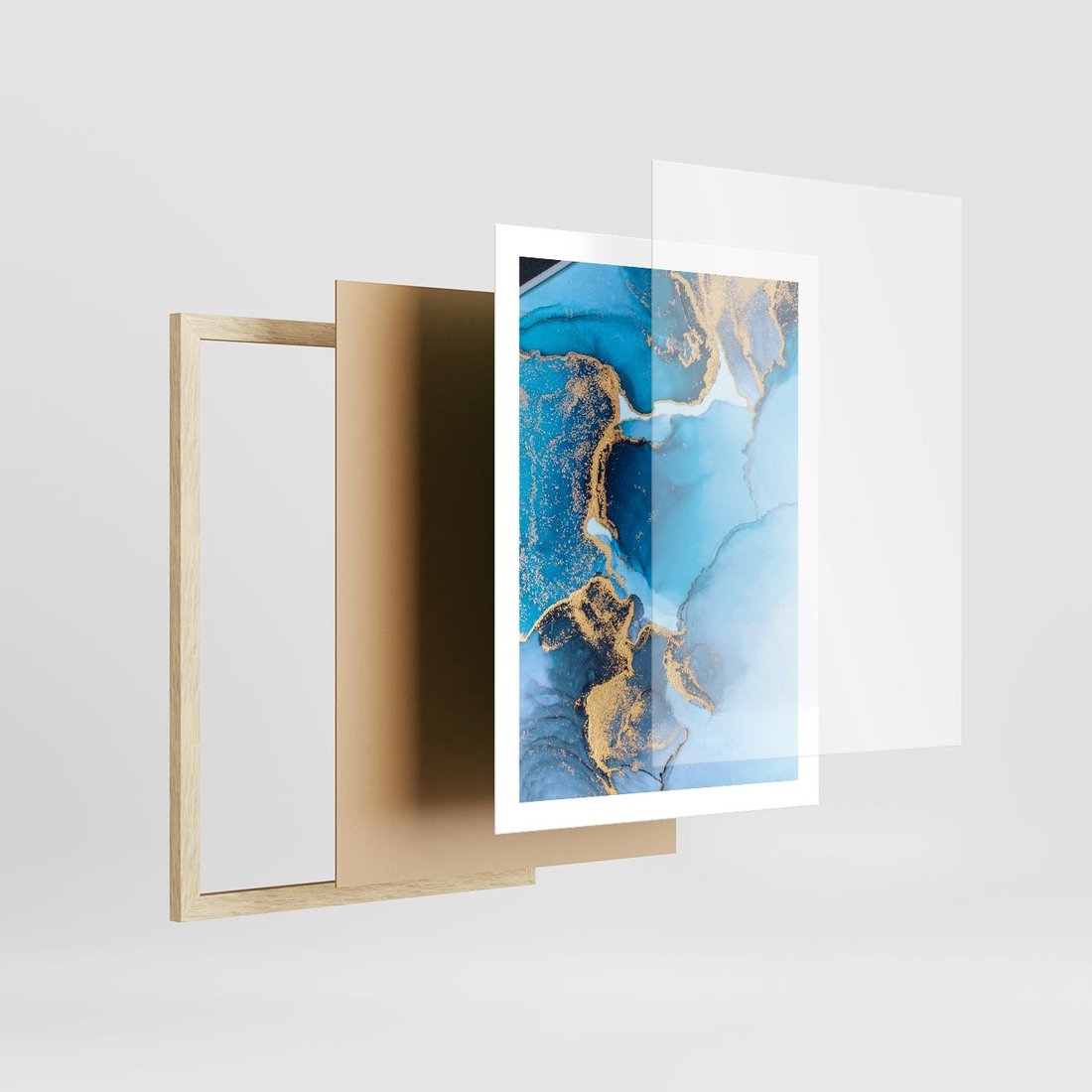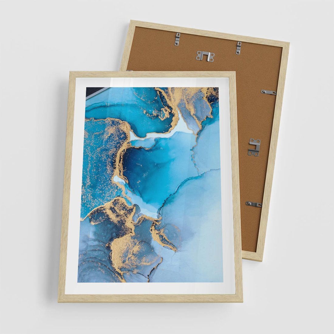 Plakat w ramie 50x70 - Elegancja i Wyrafinowanie - marmur, złoto - rama drewno