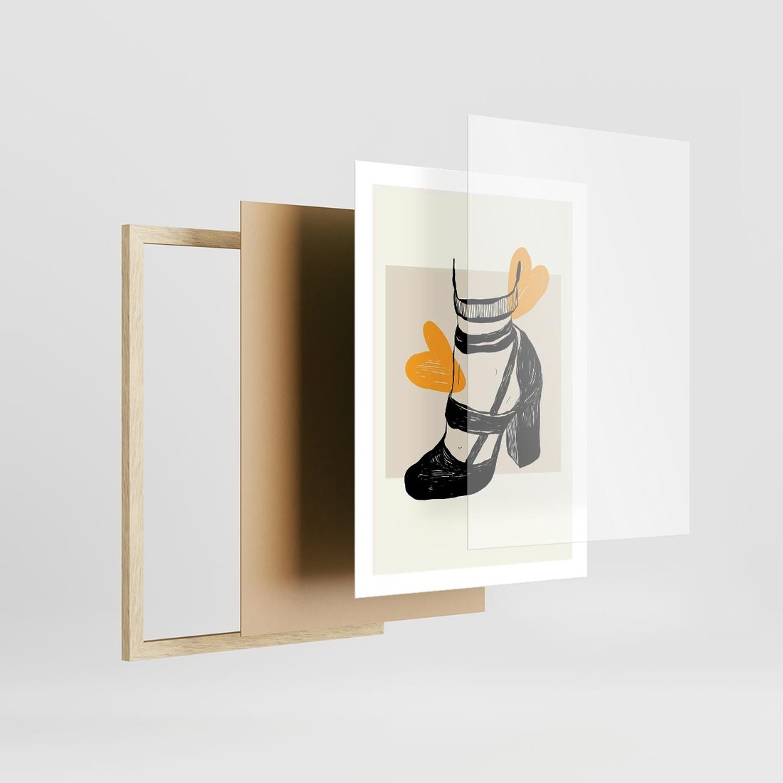 - Plakat w ramie 50x70 - Elegancja w Szkicu: Stopa w Bucie na Obcasie