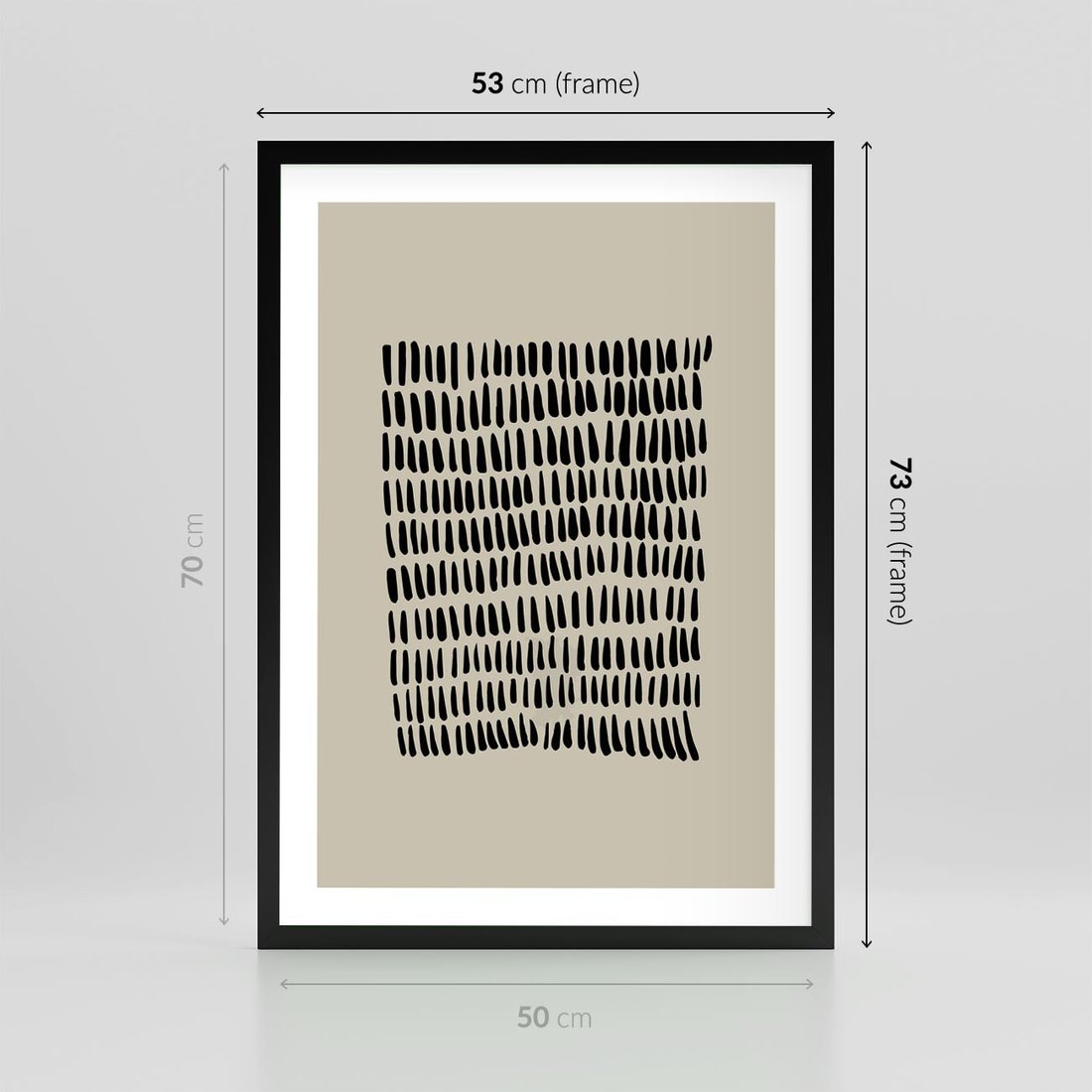 Plakat w ramie 50x70 - Energetyczne Pulsacje Nowości - boho plakat, czarne kropki kreski - rama czarna