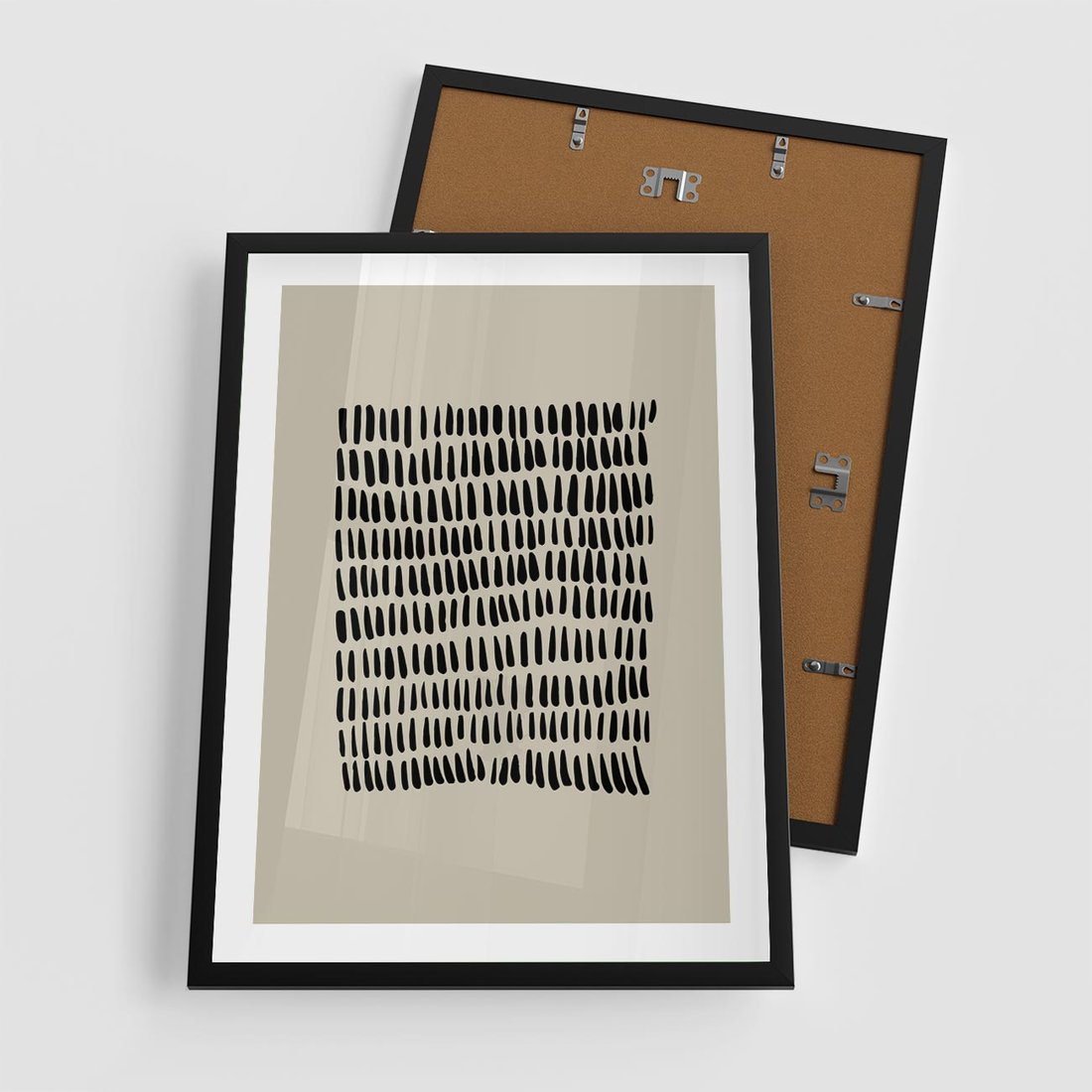 Ten boho plakat charakteryzuje się obecnością czarnych kropek i kresek na delikatnym beżowym tle. To dzieło sztuki łączy w sobie estetykę boho z subtelnym minimalizmem, tworząc spójny i urokliwy efekt. Idealny wybór dla miłośników stylu boho, którzy pragną subtelnie ozdobić swoje wnętrza unikalnym plakatem.