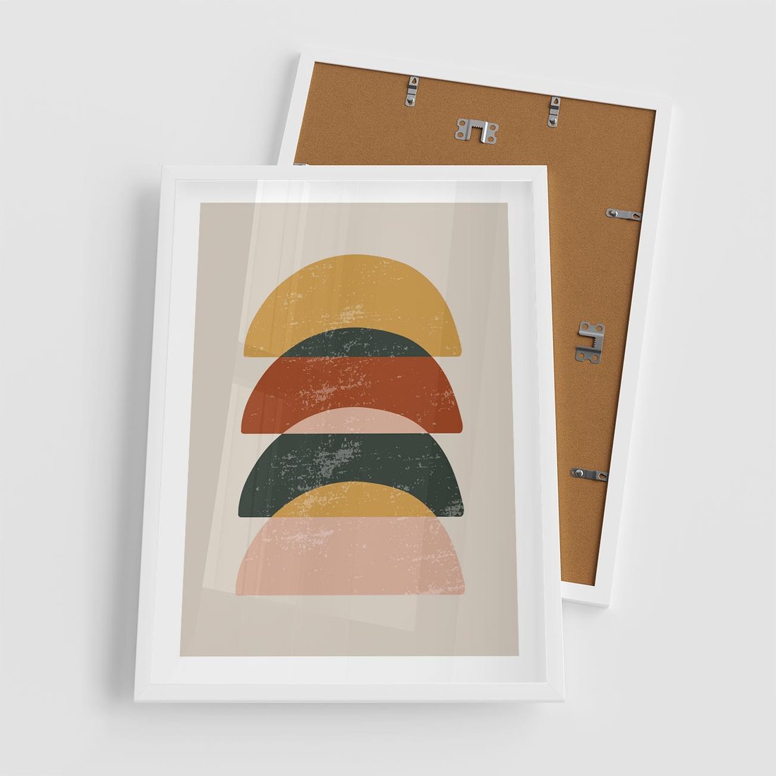 Nasz nowoczesny plakat przedstawia abstrakcyjne kształty w stonowanych brązowych odcieniach. To minimalistyczne dzieło sztuki wprowadza subtelność i nowoczesność do Twojej przestrzeni, tworząc jednocześnie interesującą i wyrafinowaną kompozycję.