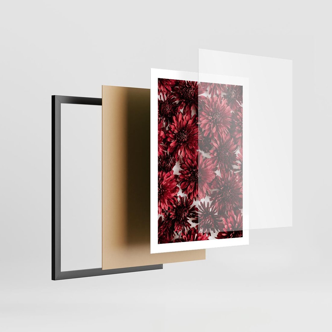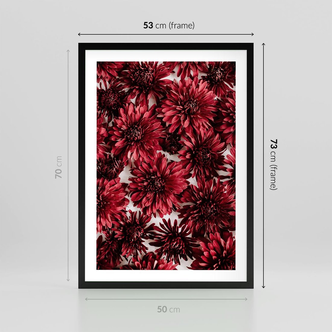 Plakat w ramie 50x70 - Energia Kwiatów - czerwone kwiaty, kompozycja - rama czarna