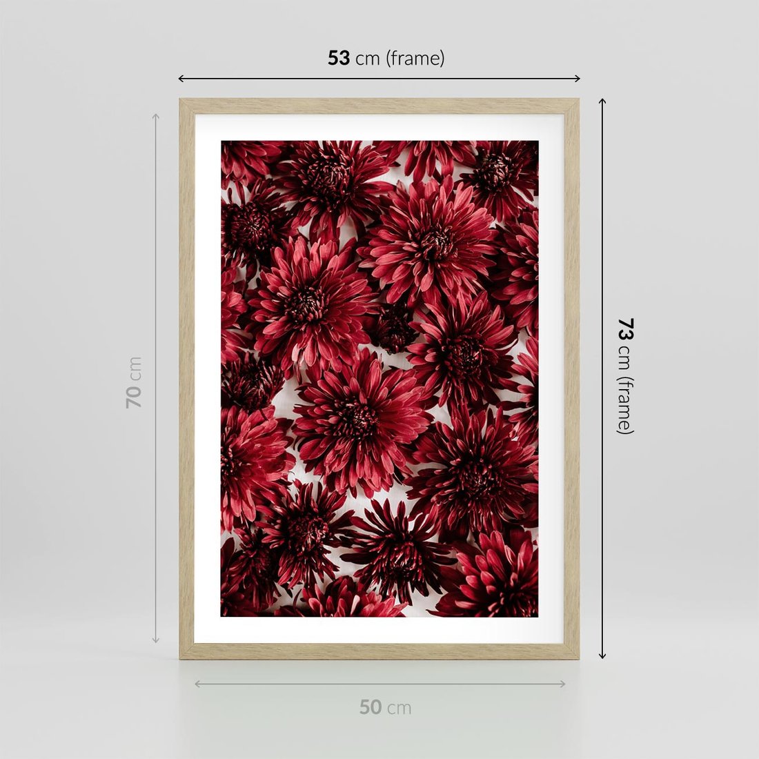 Plakat w ramie 50x70 - Energia Kwiatów - czerwone kwiaty, kompozycja - rama drewno