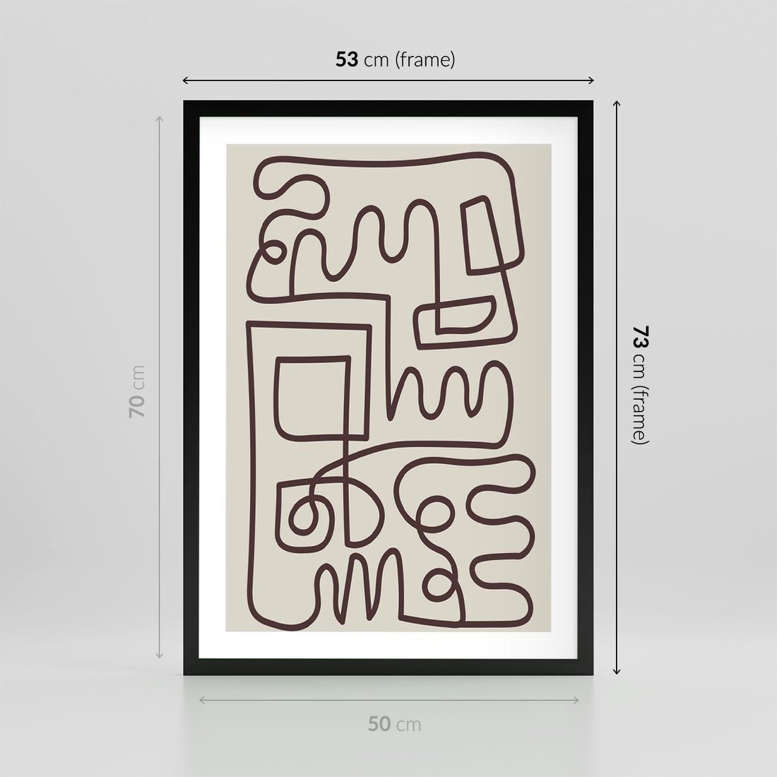 To nowoczesna boho grafika, która łączy abstrakcję, styl "one line" oraz elementy etniczne. Obraz jest kreatywnym połączeniem różnych stylów i motywów.
