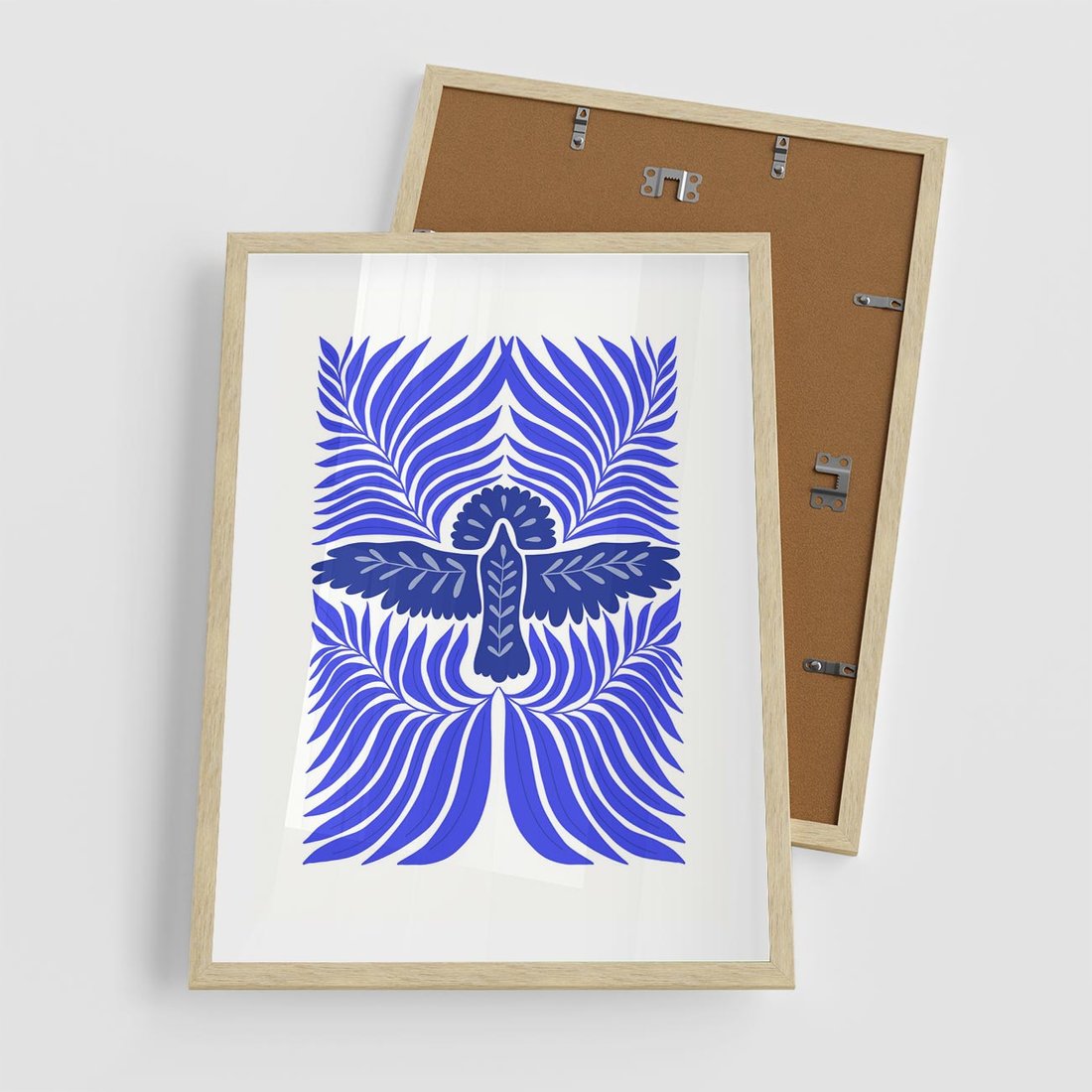 Plakat w ramie 50x70 - Etniczne Rekwizyty - etniczne roślinne wzory, granat - rama drewno
