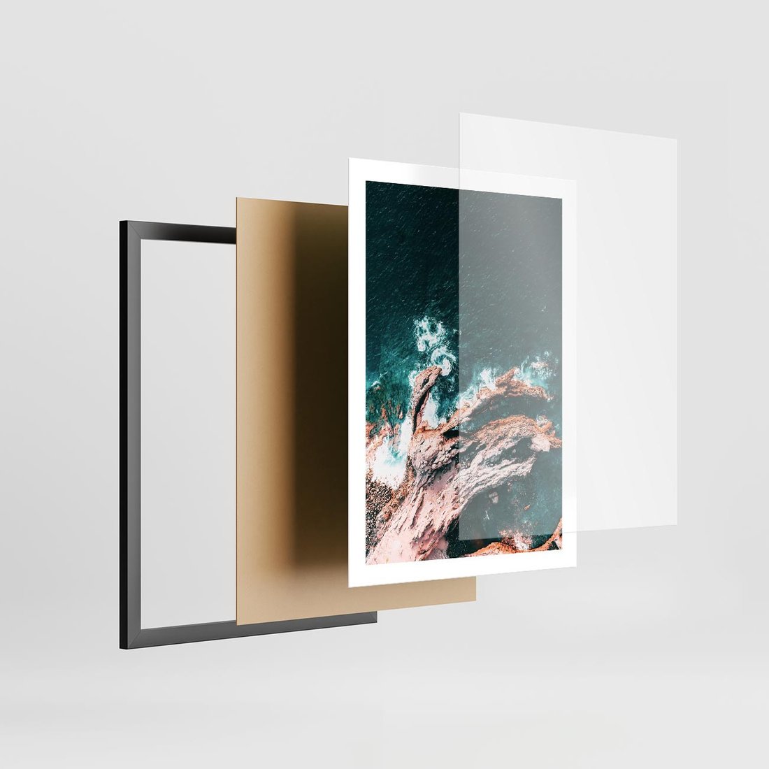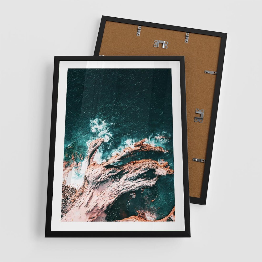 - Plakat w ramie 50x70 - Fale i Skały w Spokoju i Burzy