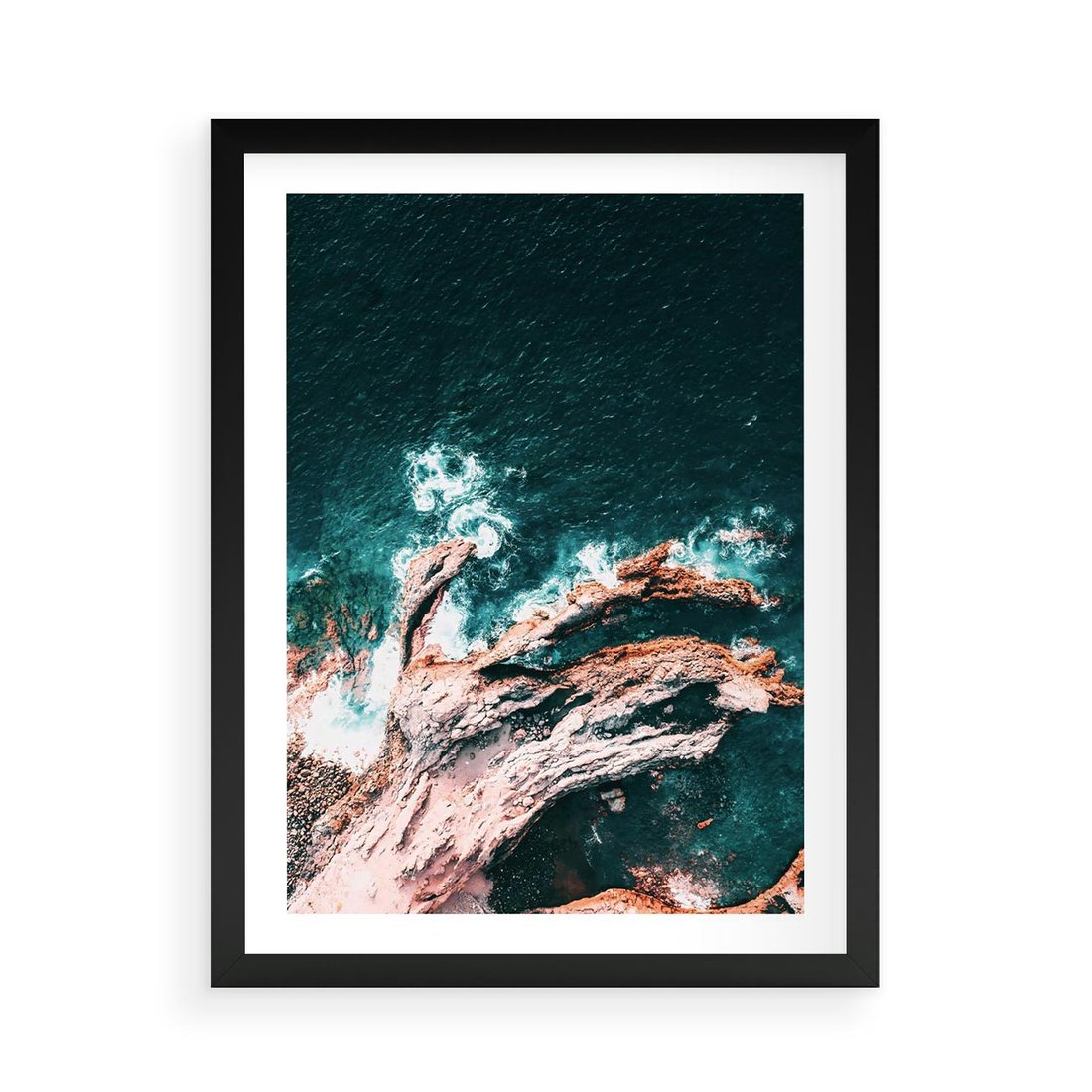 Plakat w ramie 50x70 - Fale i Skały w Spokoju i Burzy - morze, fale rozbijają się o skały - rama czarna