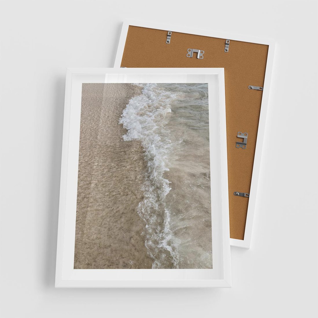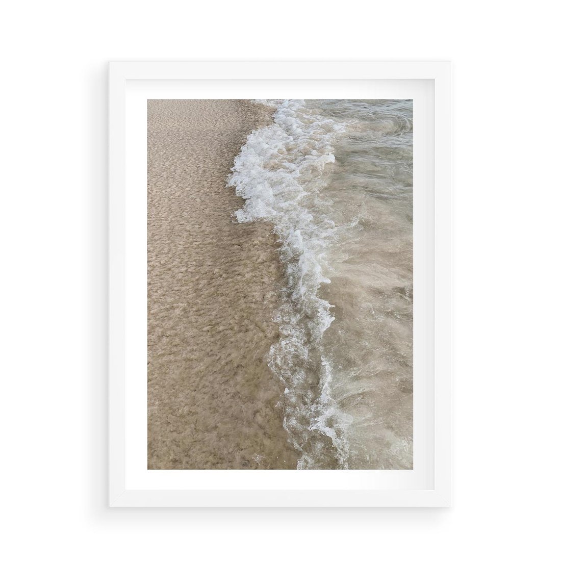 Plakat w ramie 50x70 - Fale Morza na Piasku - plaża, morze - rama biała