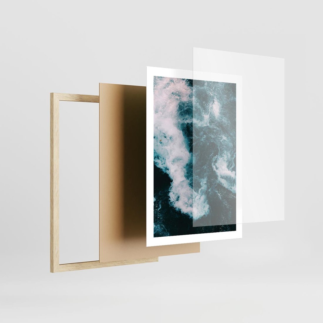 Plakat w ramie 50x70 - Fale w Odcieniach Turkusu - ocean, fale - rama drewno