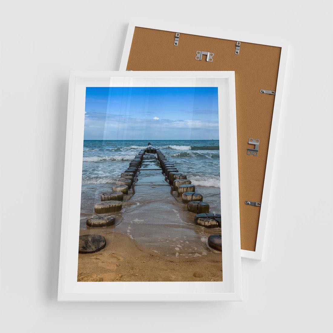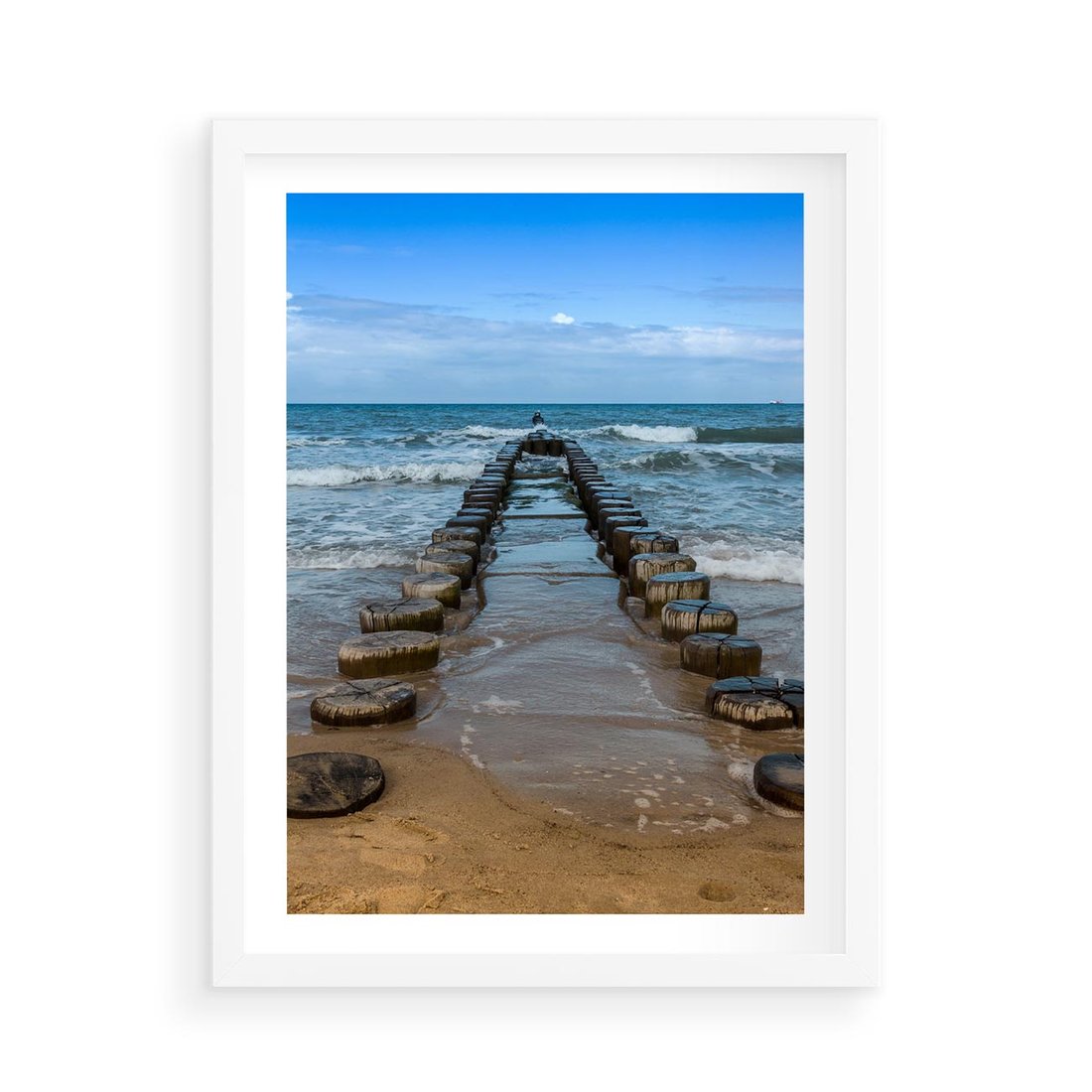 Plakat w ramie 50x70 - Falochron na brzegu morza - falochron, morze - rama biała