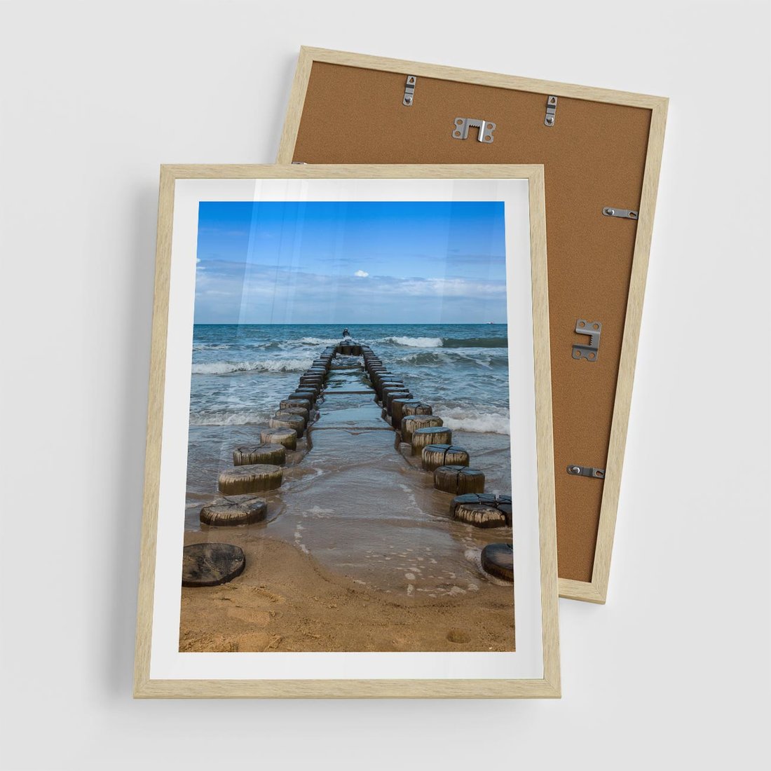 Plakat w ramie 50x70 - Falochron na brzegu morza - falochron, morze - rama drewno