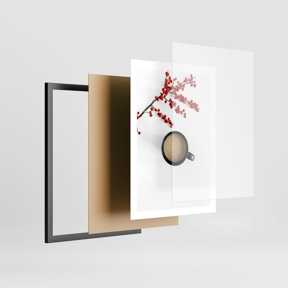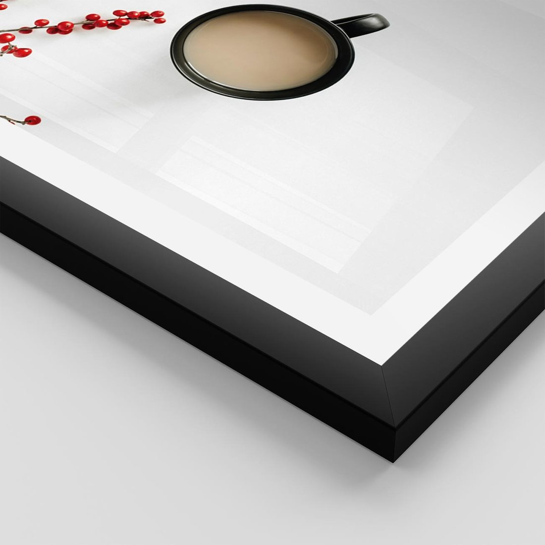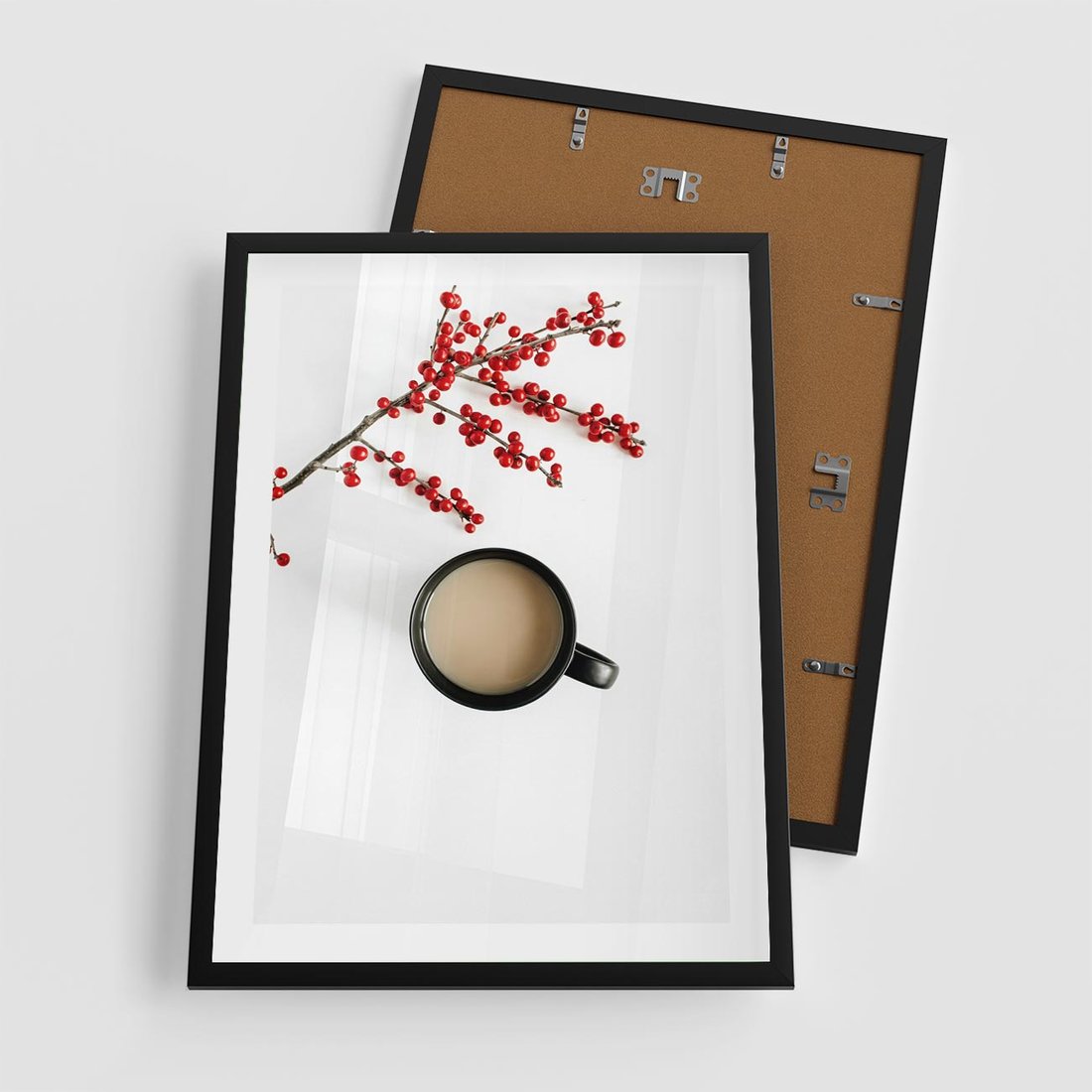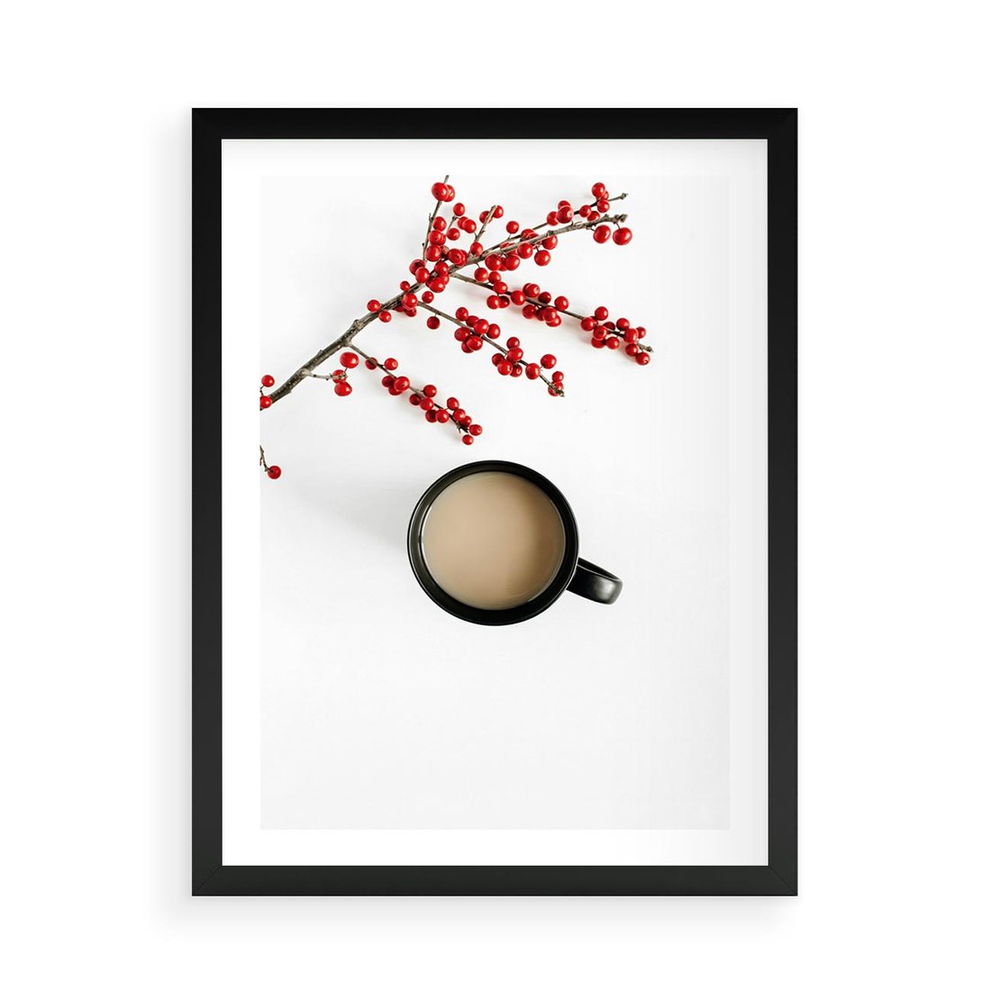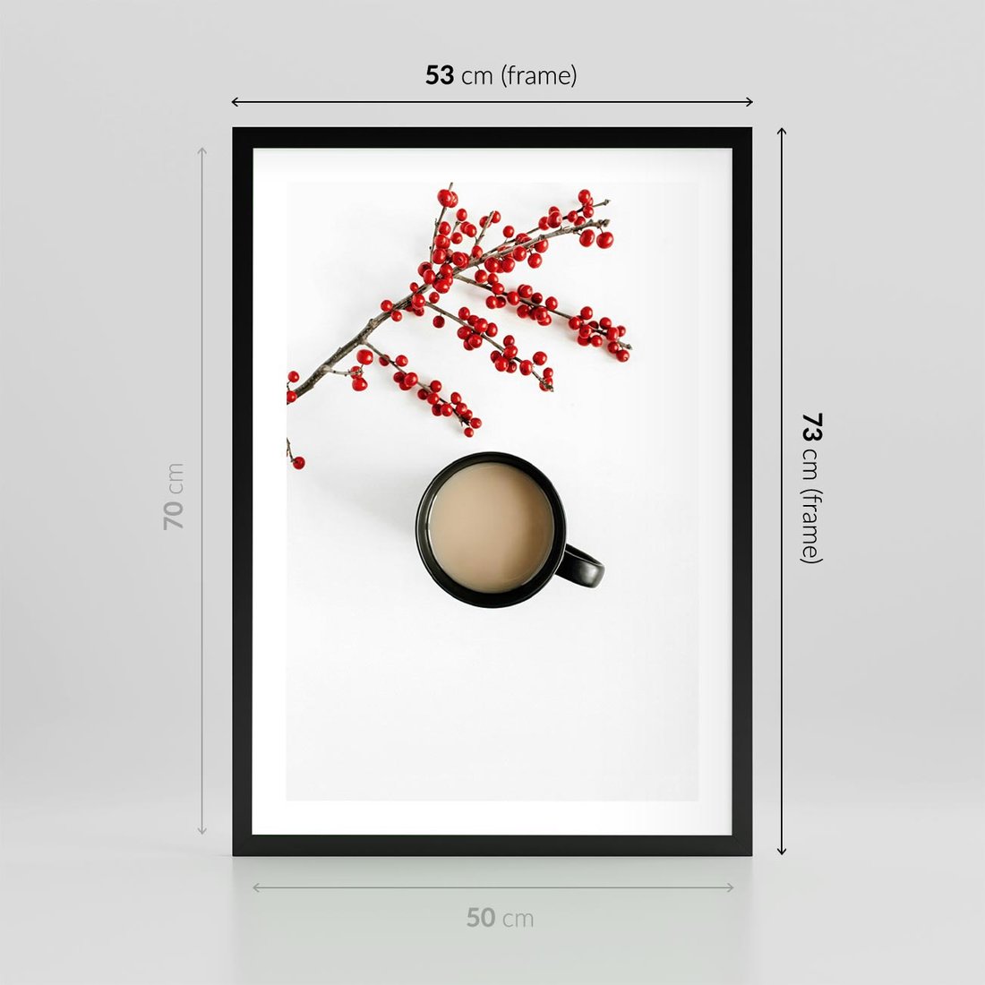 - Plakat w ramie 50x70 - Filiżanka Kawy z Gałązką Jarzębiny