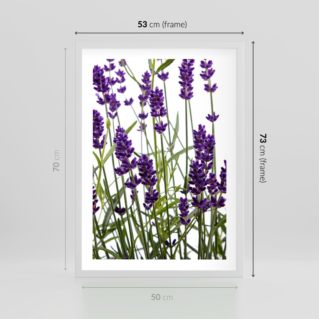 Plakat w ramie 50x70 - Fioletowa harmonia lawendy - lawenda, fiolet - rama biała