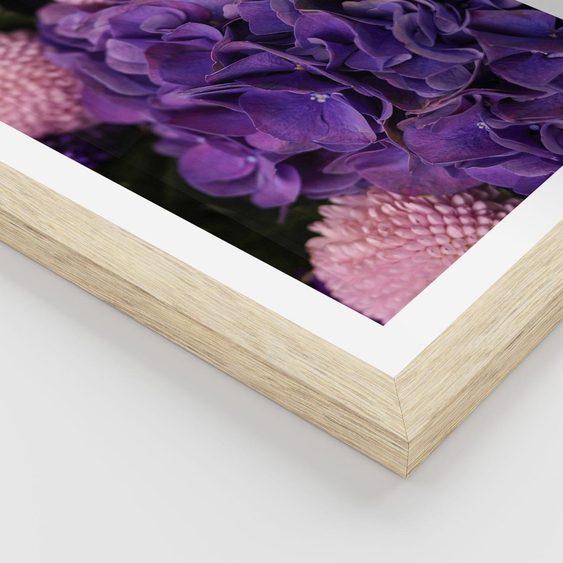 Plakat w ramie 50x70 - Fioletowa hortensja - kwiaty, hortensja - rama drewno