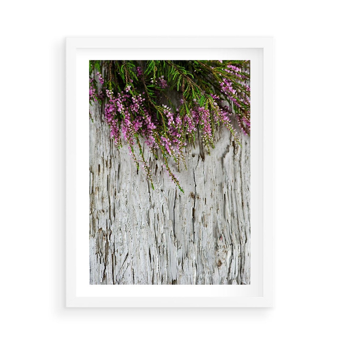 Plakat w ramie 50x70 - Fioletowe Wrzosy - wrzosy, fiolet - rama biała