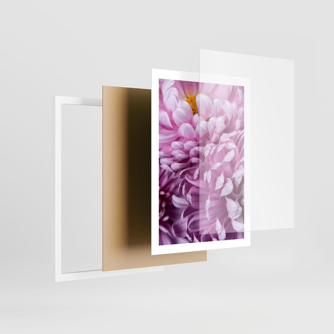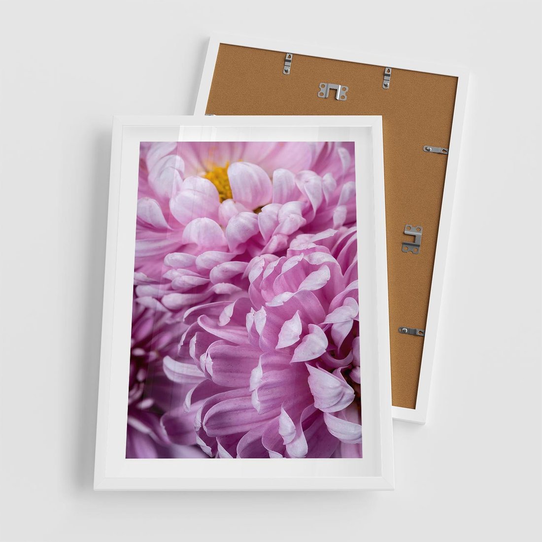 Plakat w ramie 50x70 - Fioletowy zawrót głowy - kwiat, różowy kwiat - rama biała
