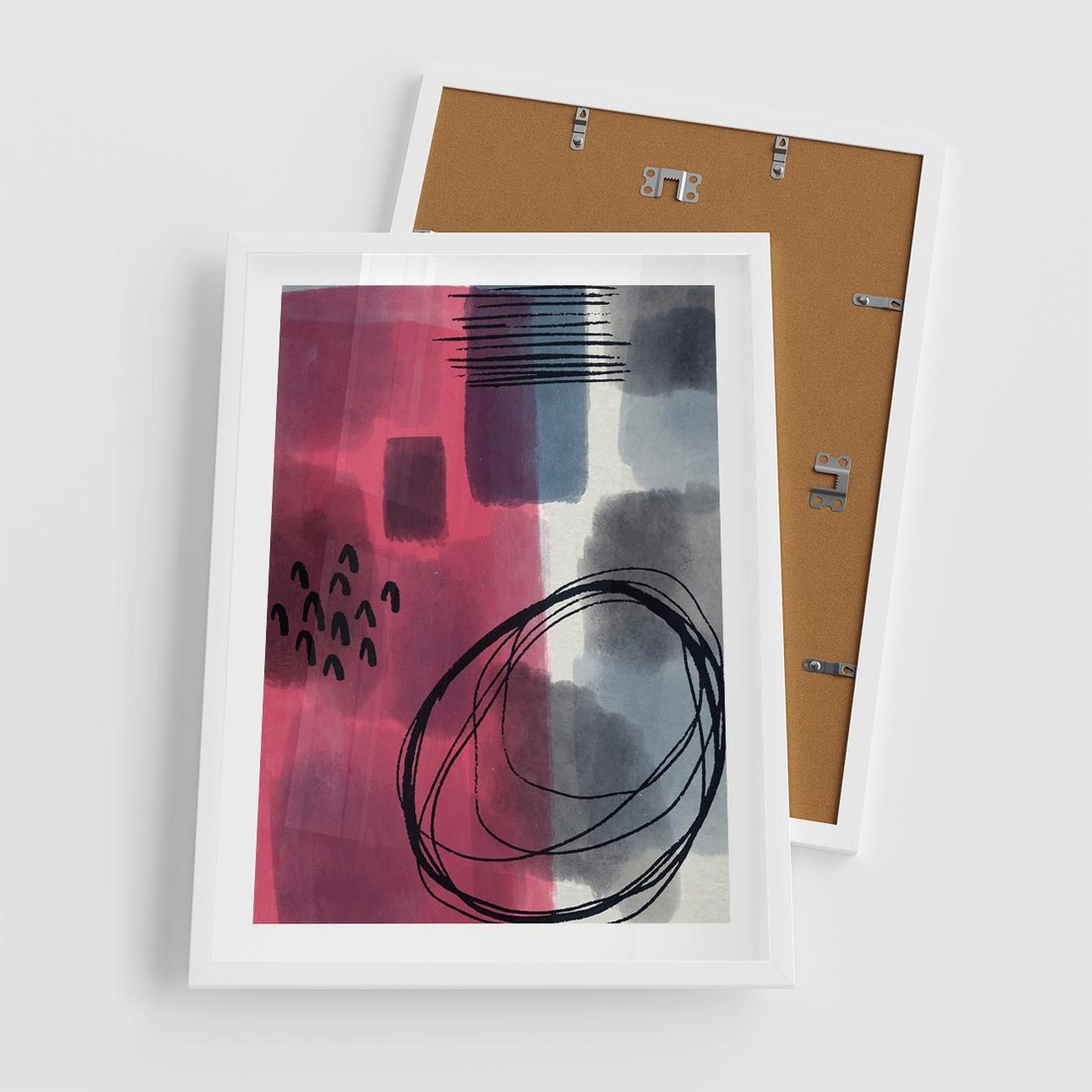 Plakat w ramie 50x70 - Formy w Różu i Granacie - abstrakcja, różne formy - rama biała