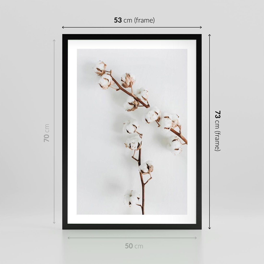 - Plakat w ramie 50x70 - Gałęzie Bawełny na Białym Tle