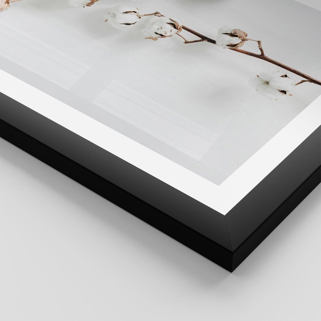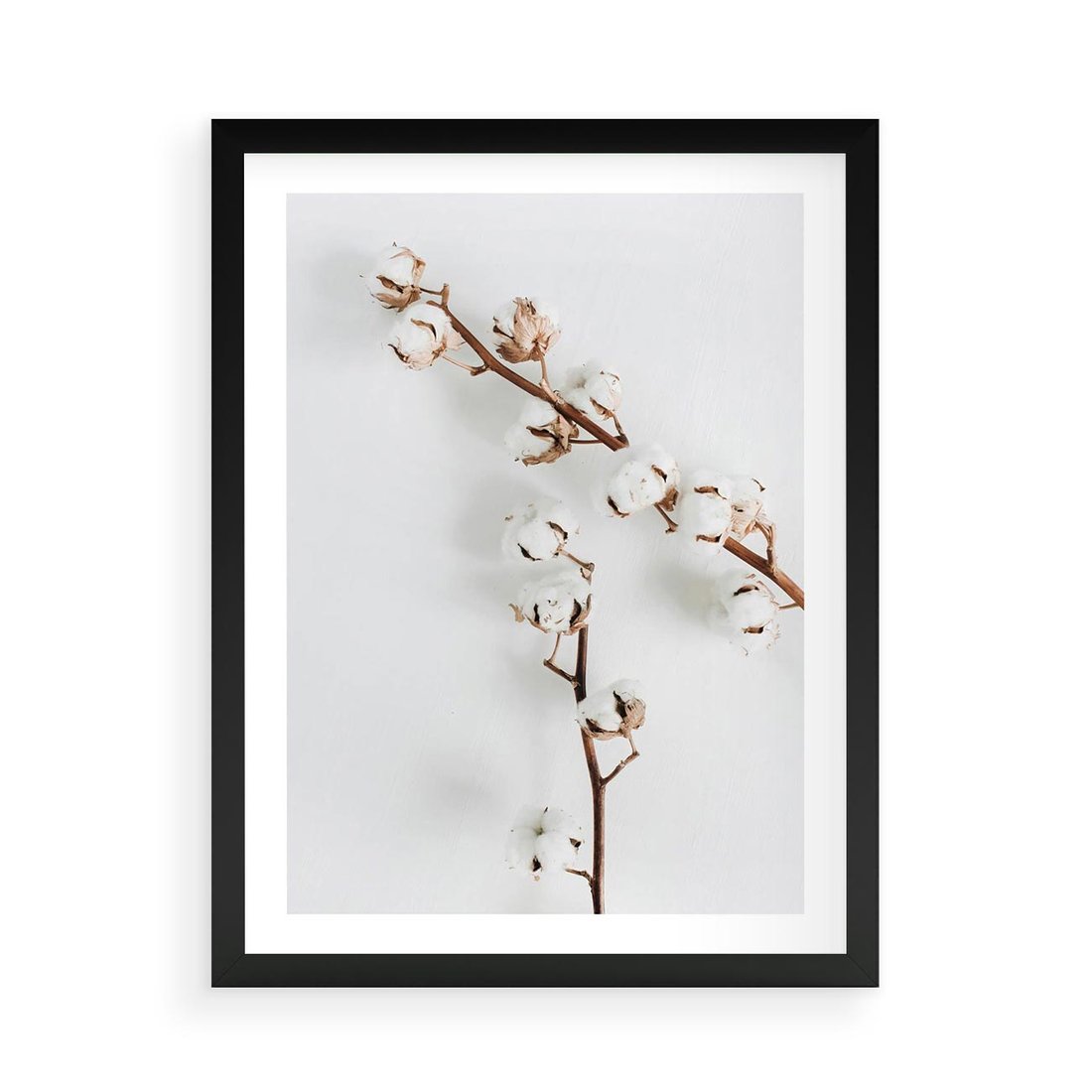 Plakat w ramie 50x70 - Gałęzie Bawełny na Białym Tle - gałęzie bawełny na białym tle, minimalizm - rama czarna