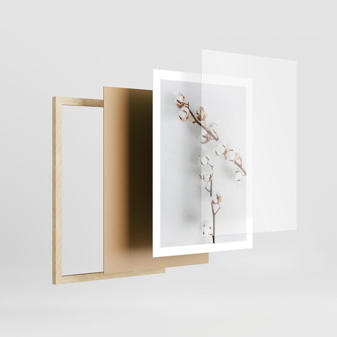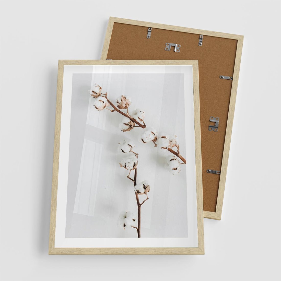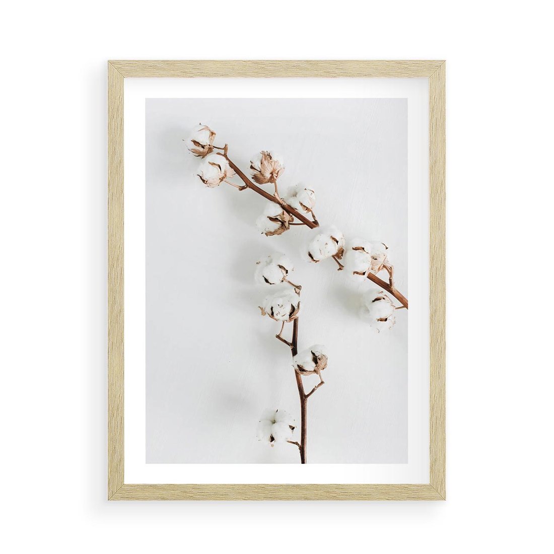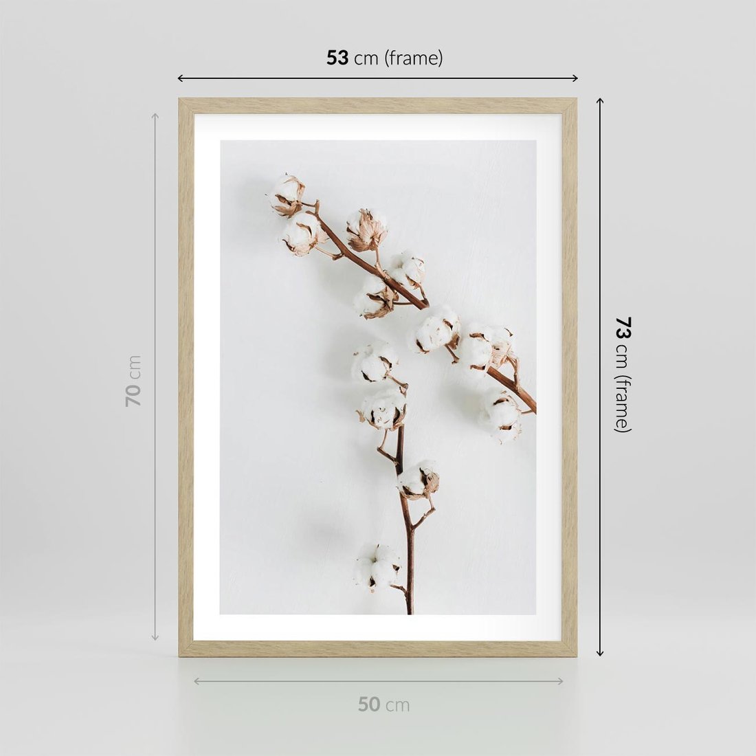 - Plakat w ramie 50x70 - Gałęzie Bawełny na Białym Tle