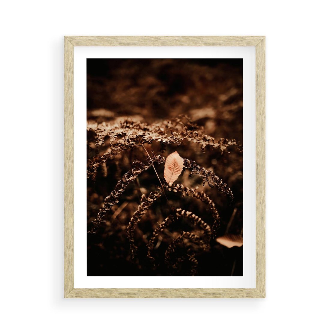 Plakat w ramie 50x70 - Gałęzie i Liść w Brązowej Tonacji - suche gałęzie, liść - rama drewno