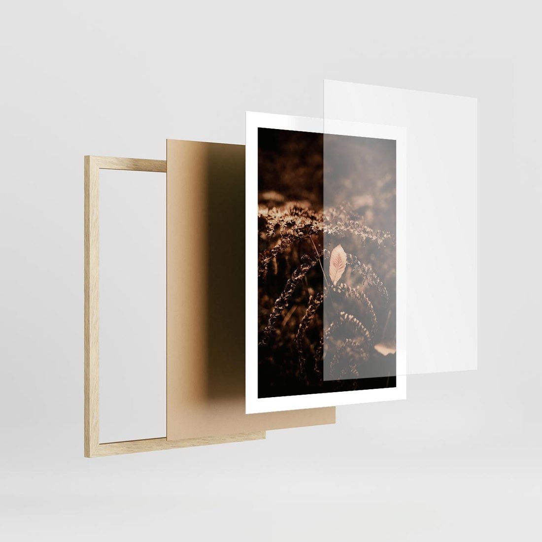 - Plakat w ramie 50x70 - Gałęzie i Liść w Brązowej Tonacji