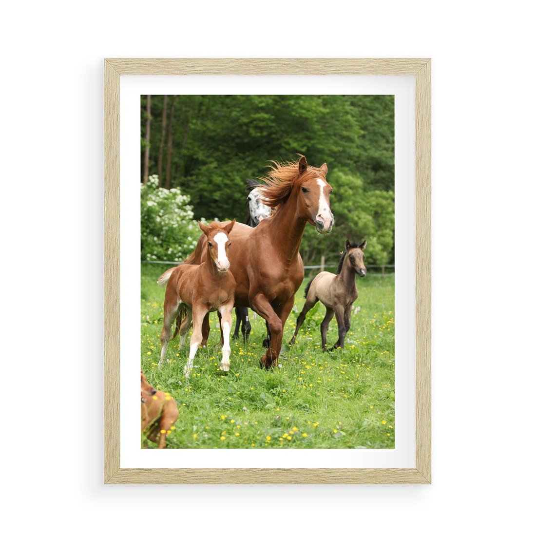 Plakat w ramie 50x70 - Galopujące konie - konie, galop - rama drewno