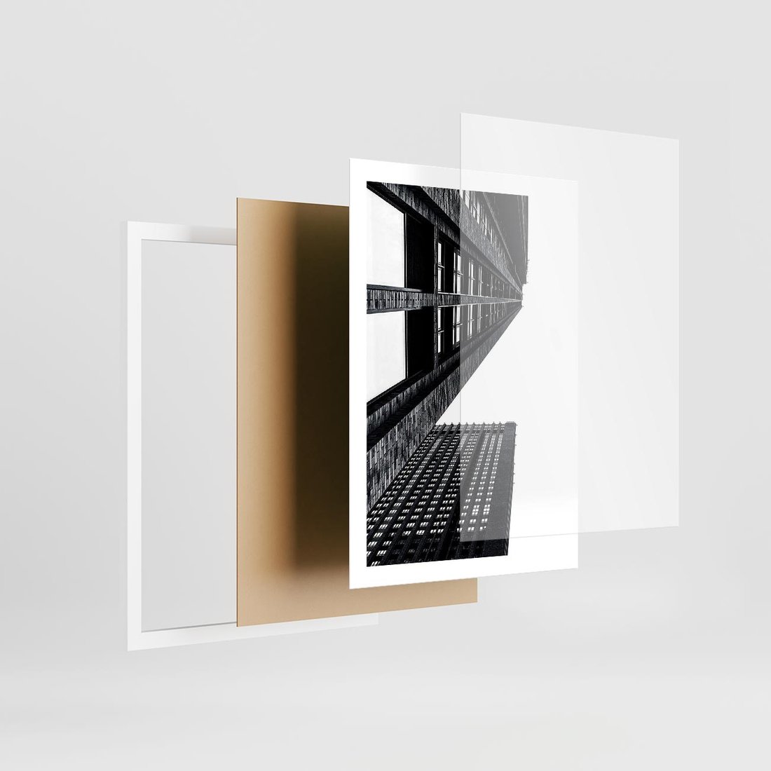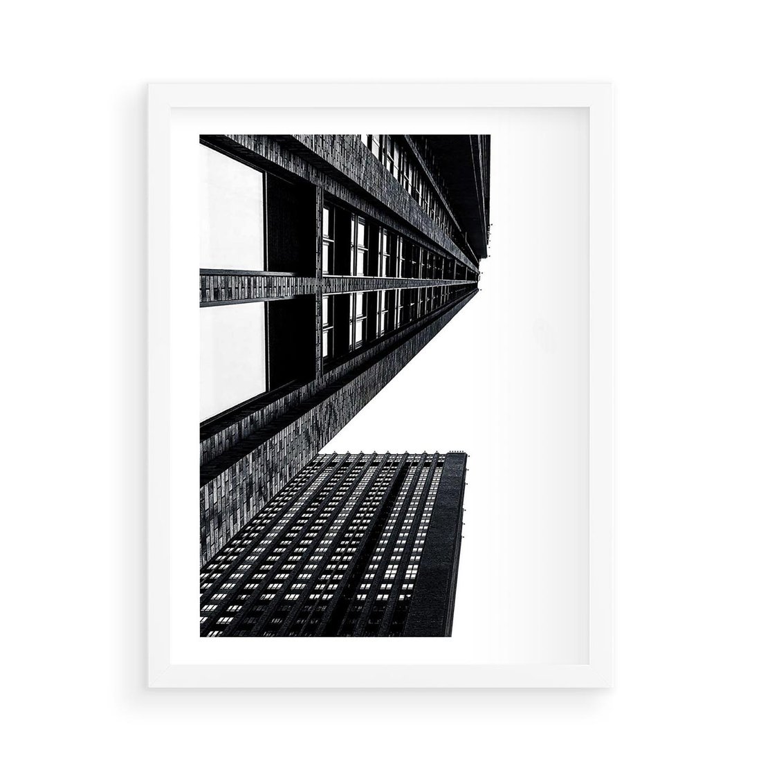 Plakat w ramie 50x70 - Geometryczna Asymetria - architektura, czarno białe zdjęcie - rama biała