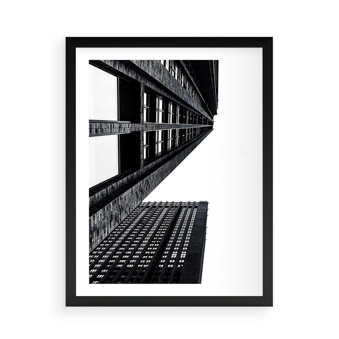 Plakat w ramie 50x70 - Geometryczna Asymetria - architektura, czarno białe zdjęcie - rama czarna