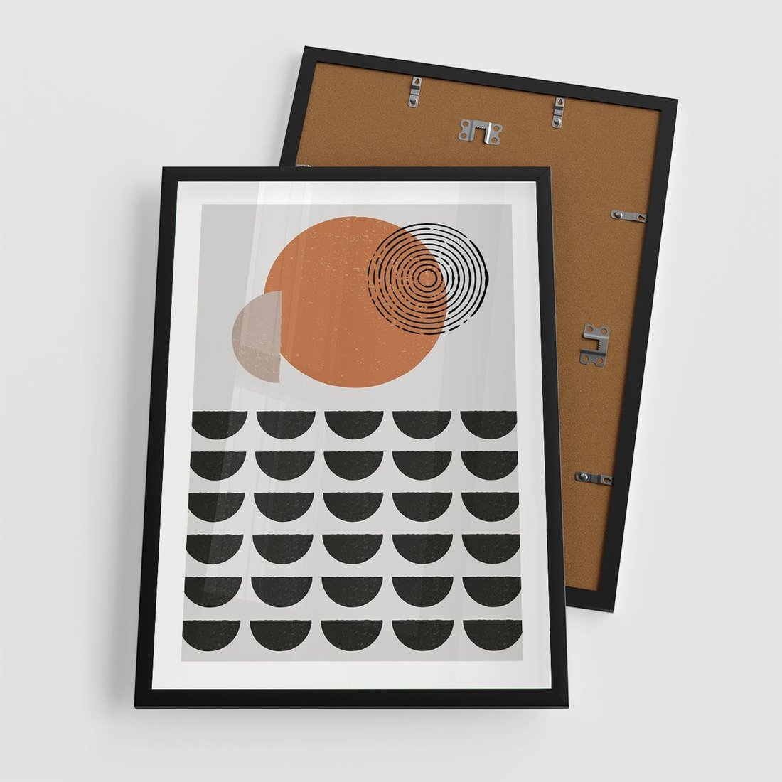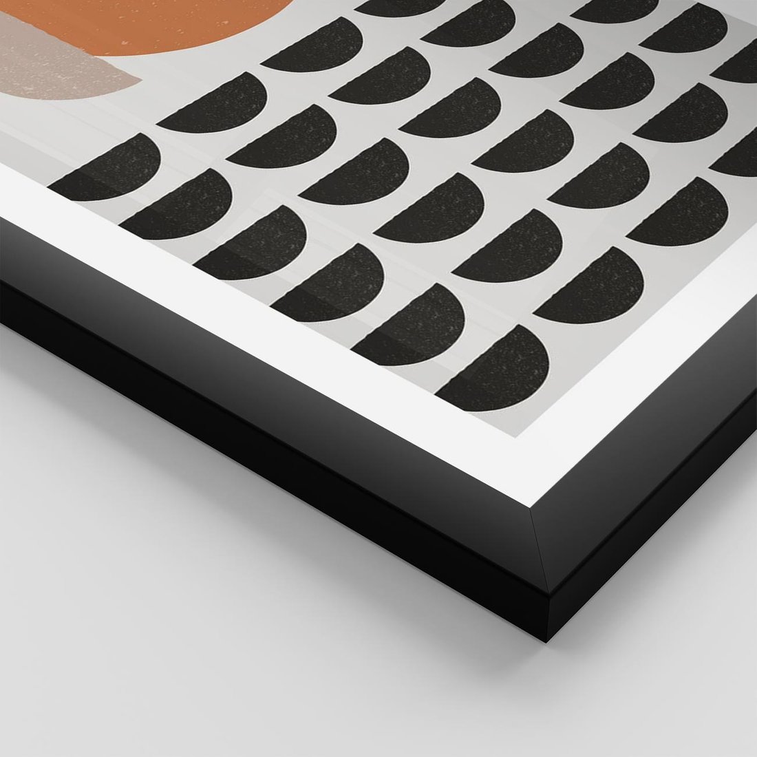 Plakat w ramie 50x70 - Geometryczna Ekspresja - geometryczny graficzny obraz, pomarańczowe koło - rama czarna