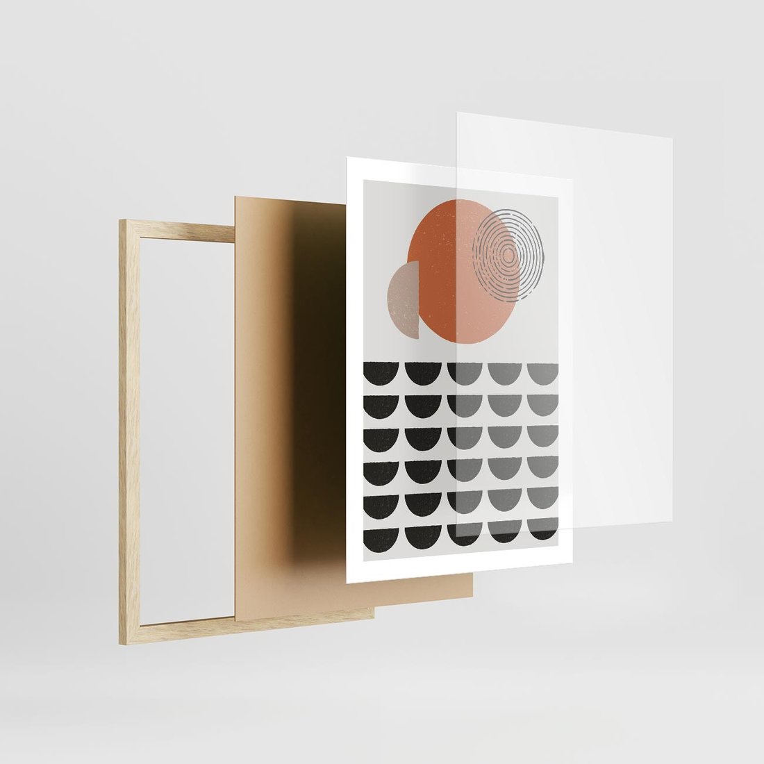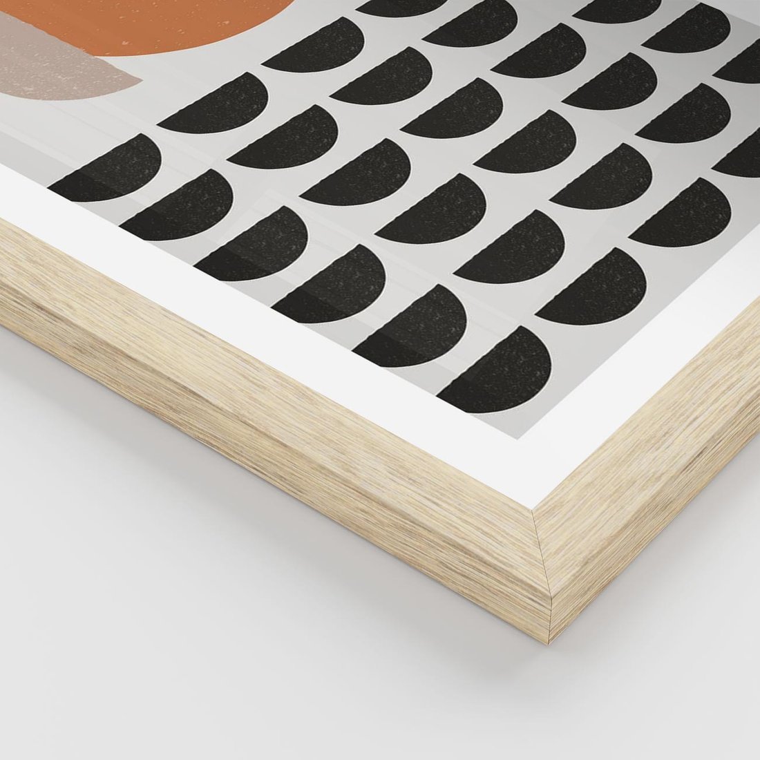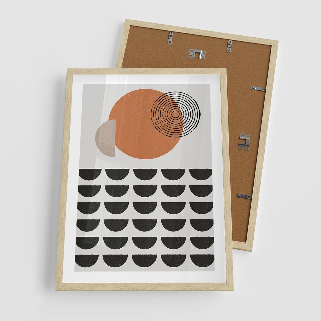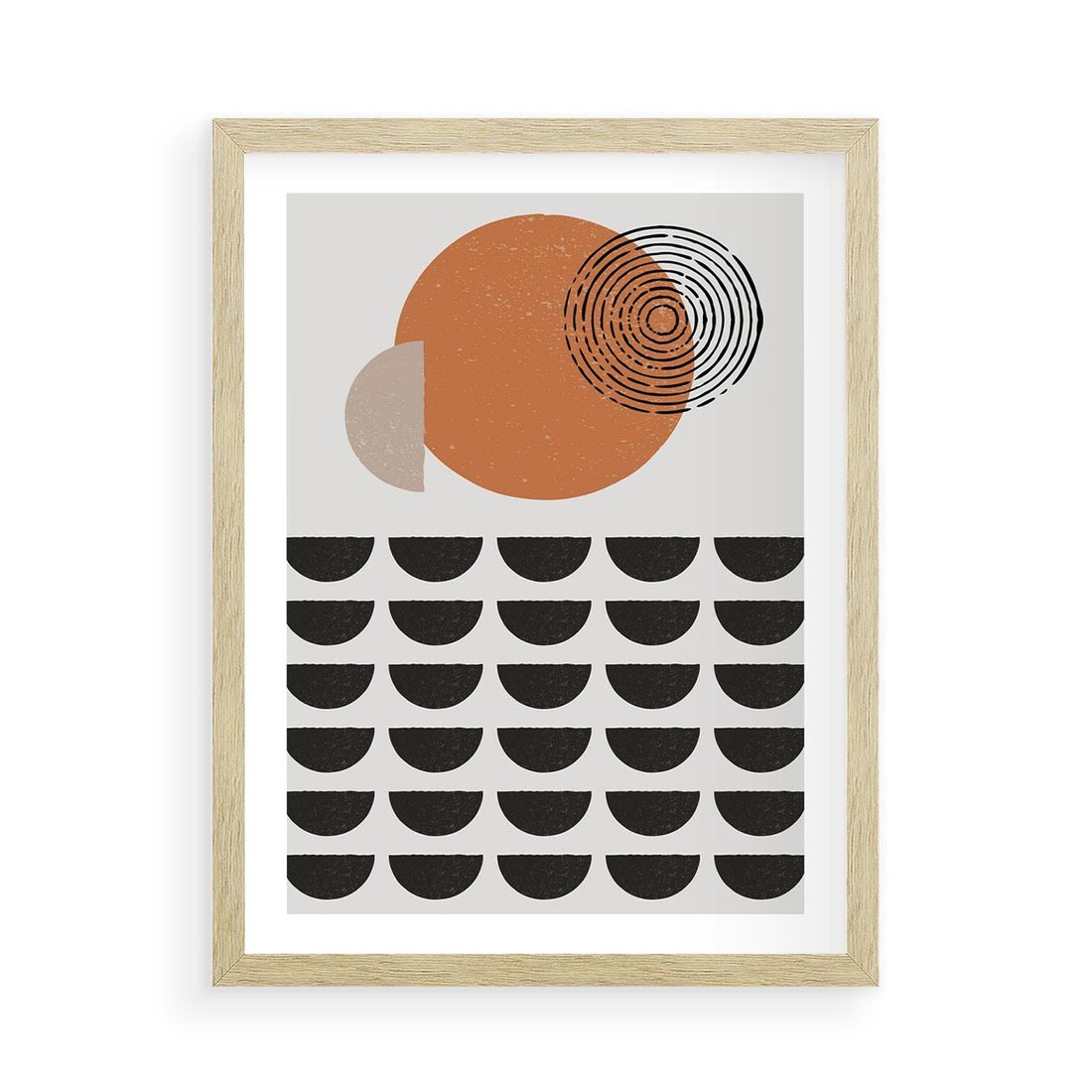 Plakat w ramie 50x70 - Geometryczna Ekspresja - geometryczny graficzny obraz, pomarańczowe koło - rama drewno