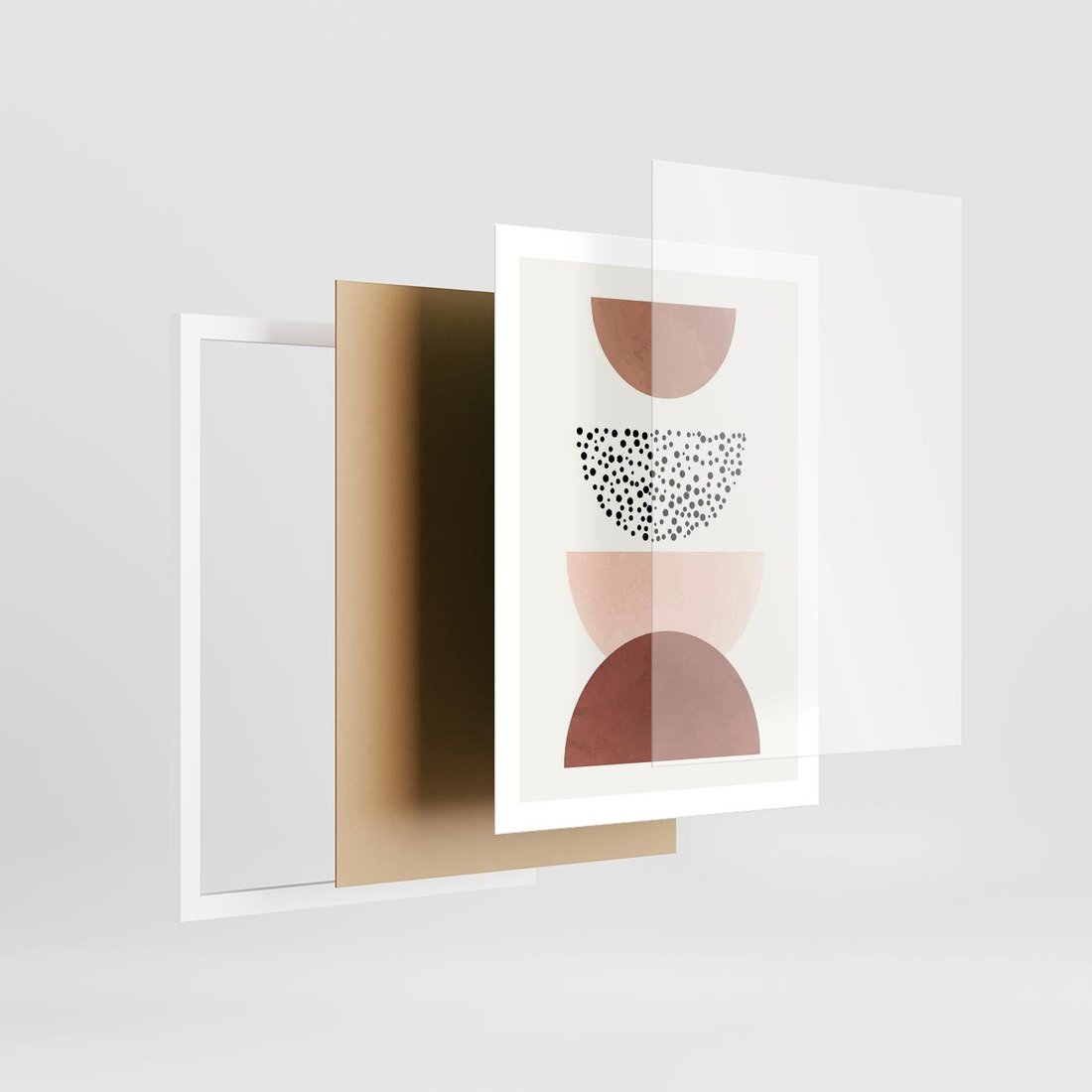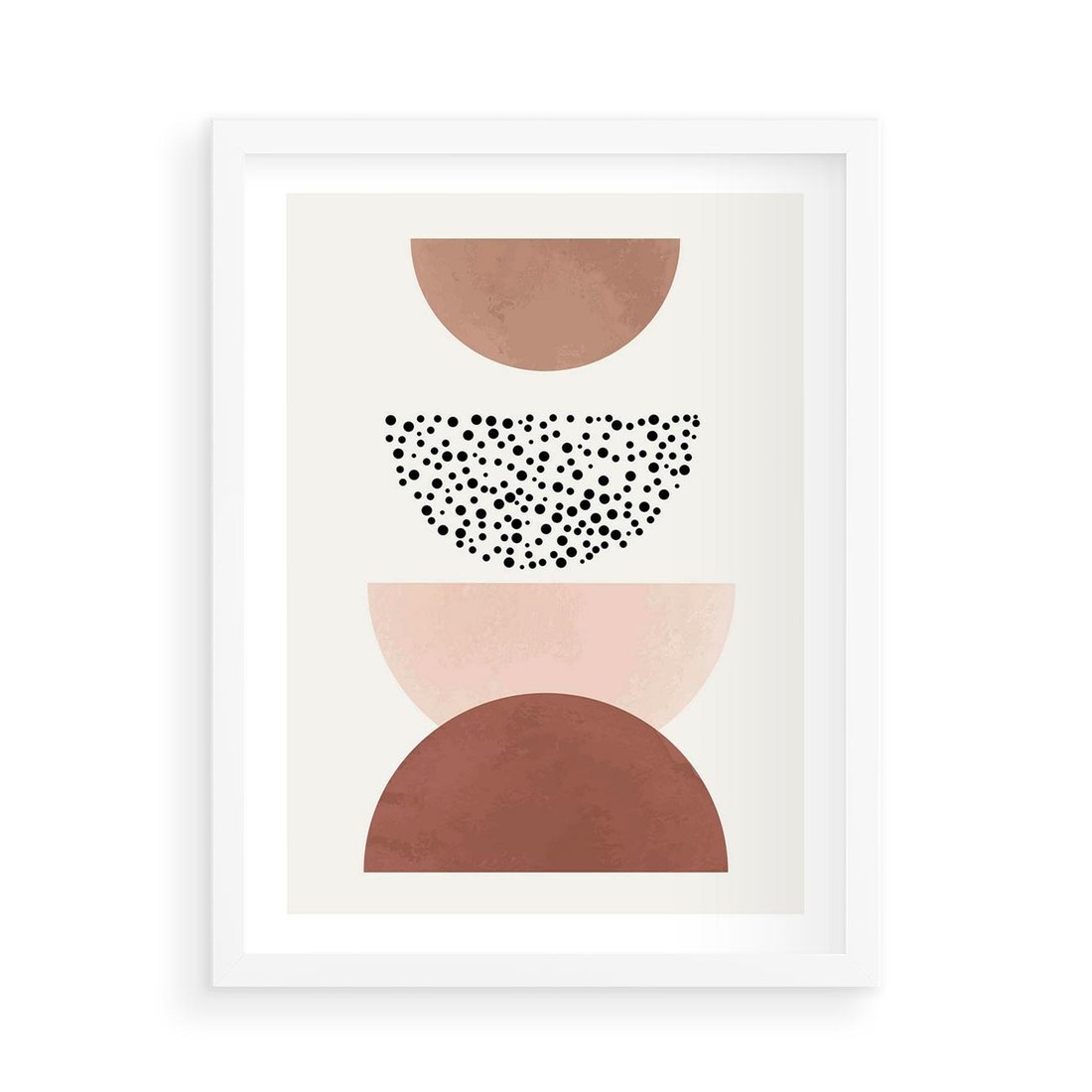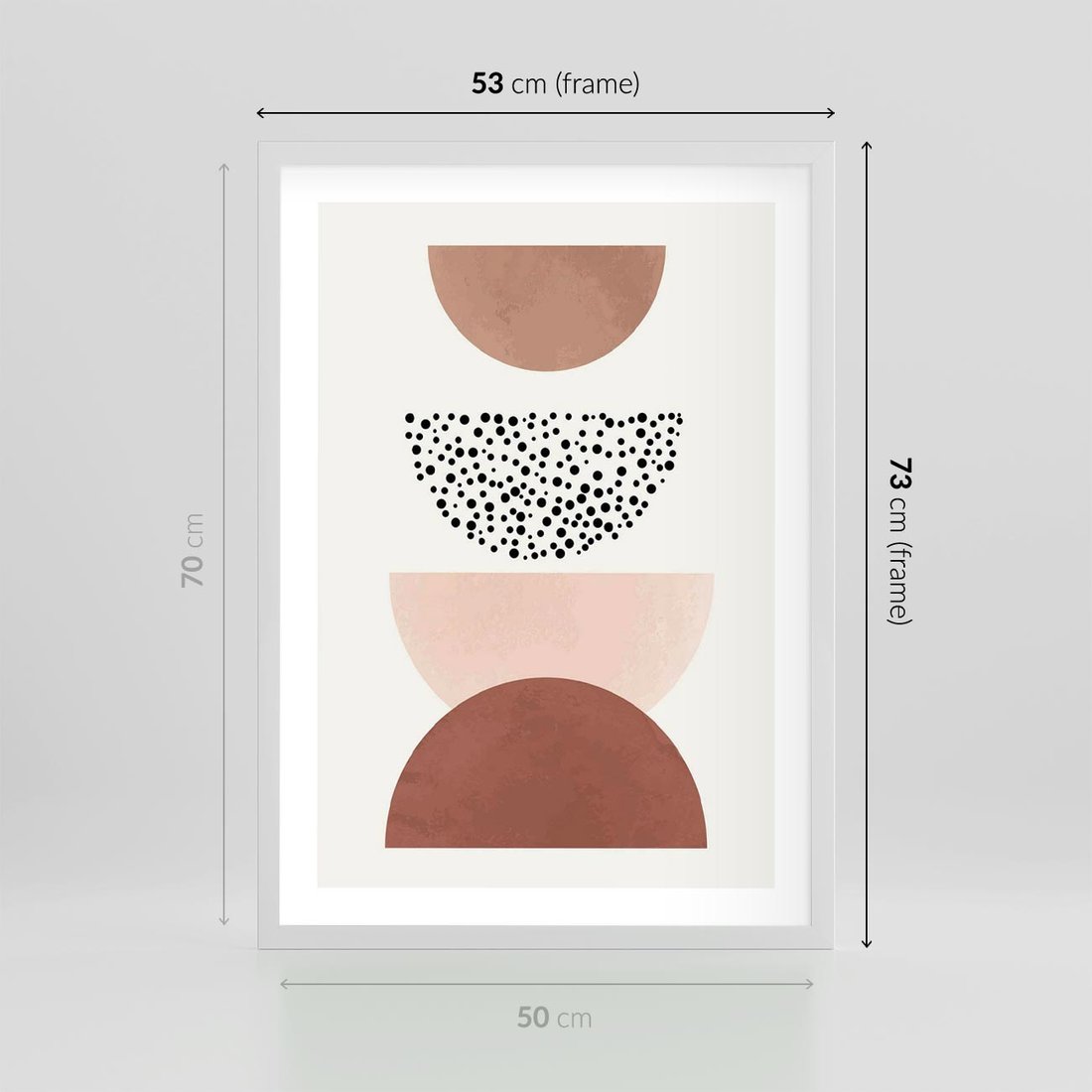 Plakat w ramie 50x70 - Geometryczna Harmonia w Brązach i Beżach - geometryczne kształty, brązy i beże - rama biała