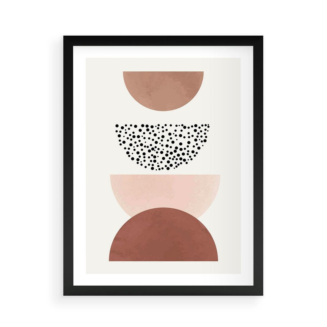 Plakat w ramie 50x70 - Geometryczna Harmonia w Brązach i Beżach - geometryczne kształty, brązy i beże - rama czarna