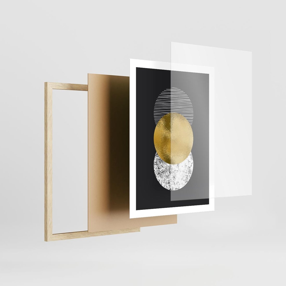 To geometryczna grafika, w której dominuje złote koło. Grafika ta łączy w sobie abstrakcję i geometrię, tworząc harmonijną kompozycję.