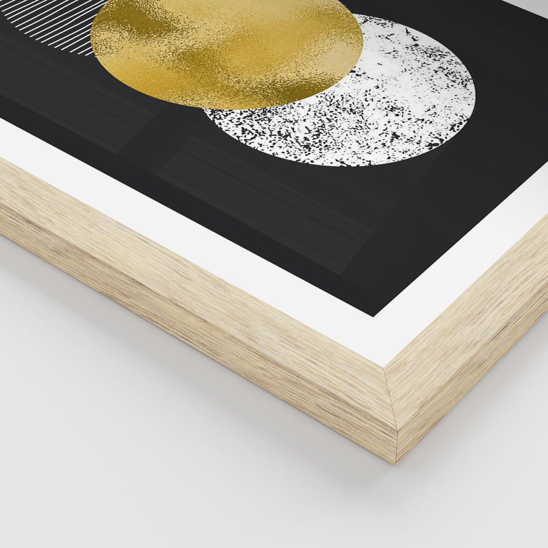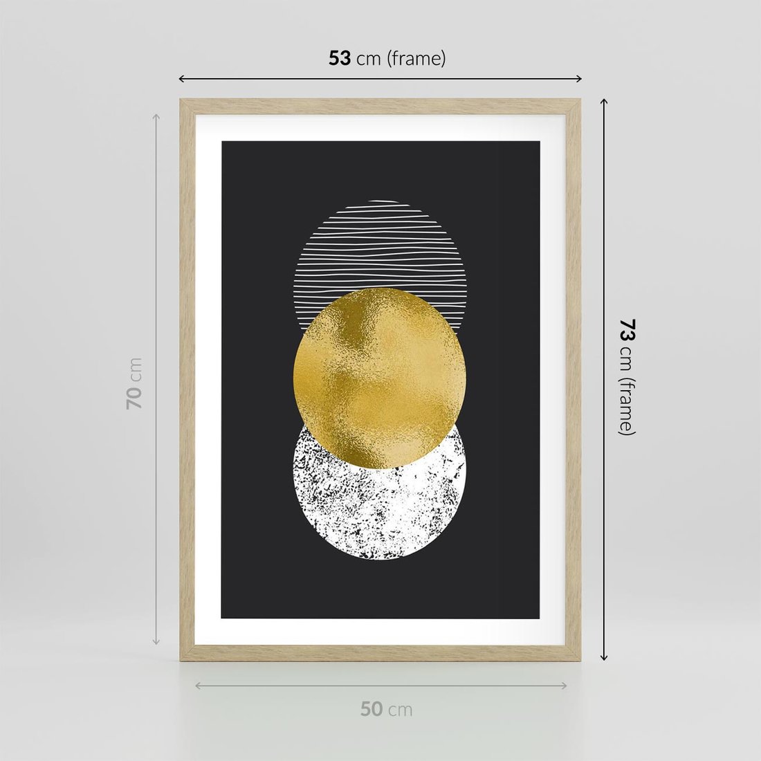 Plakat w ramie 50x70 - Geometryczna Perfekcja: Złote Koło - geometryczna grafika, złote koło - rama drewno