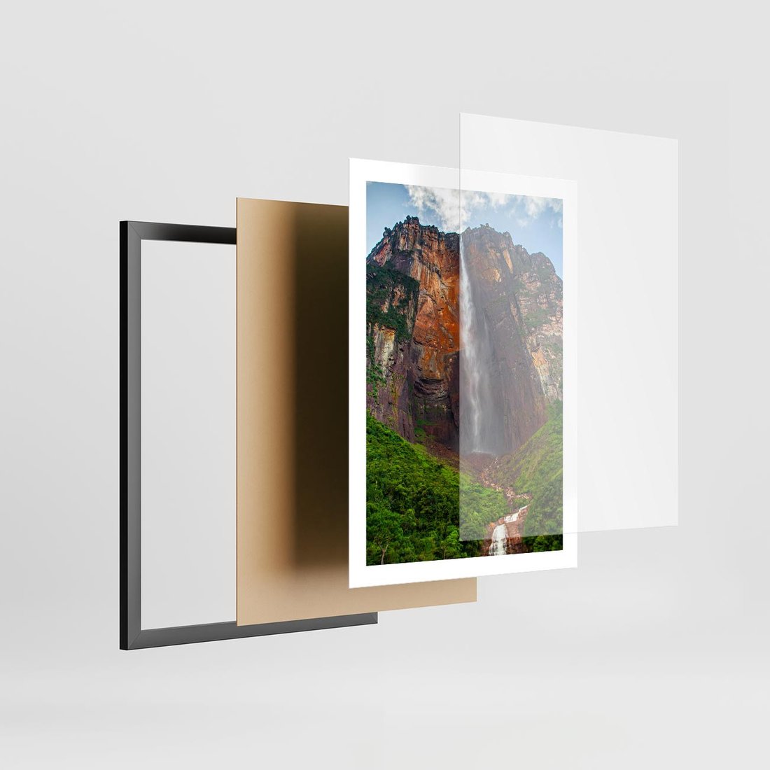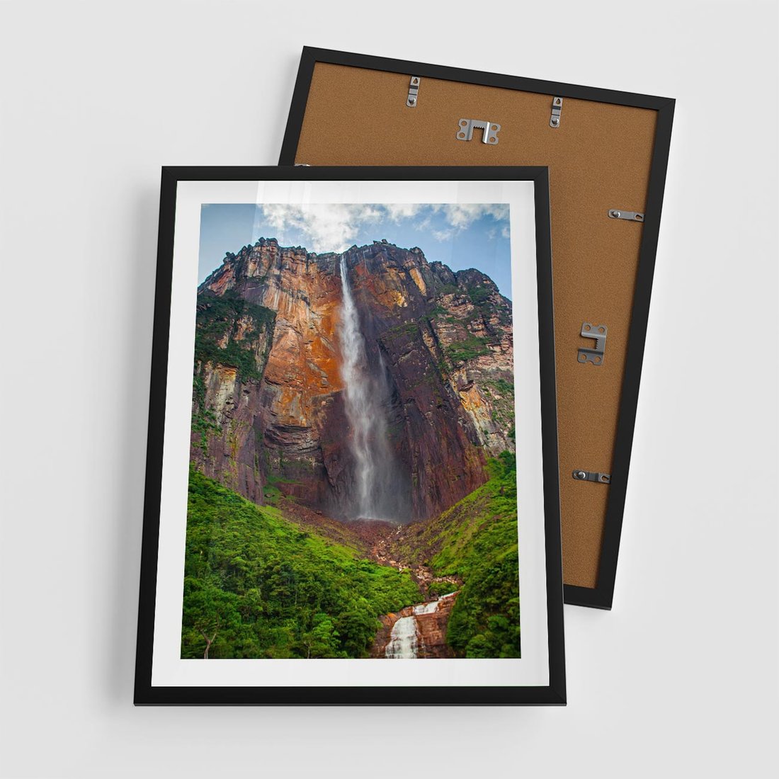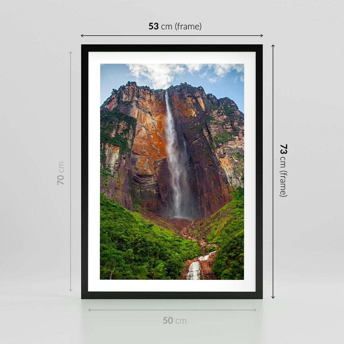 Plakat w ramie 50x70 - Górska siła wodospadów - wodospad, góra - rama czarna