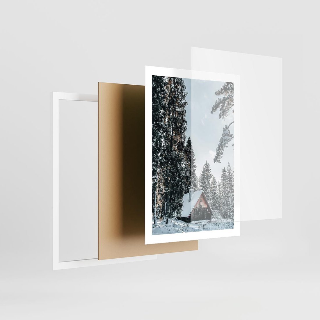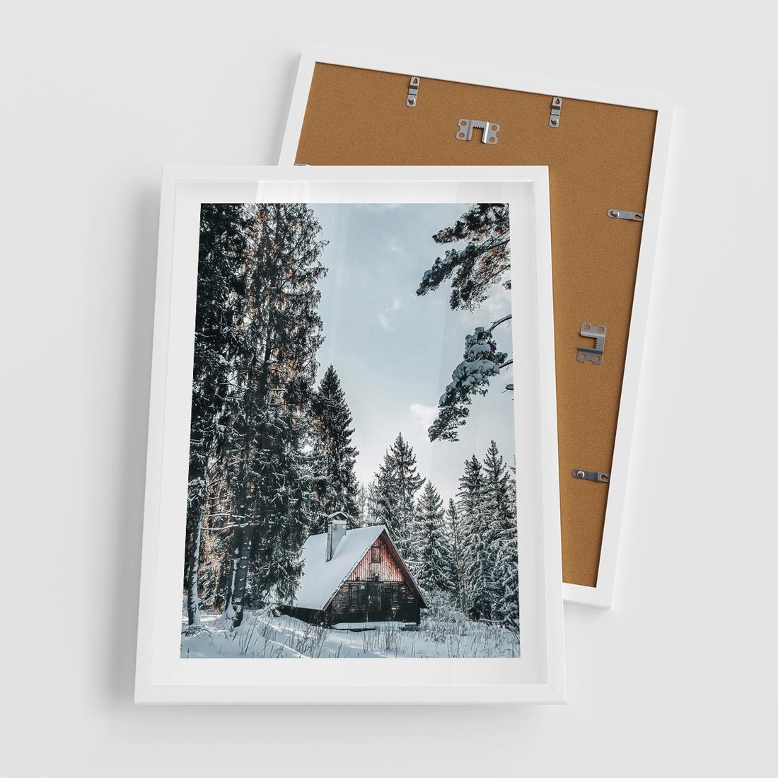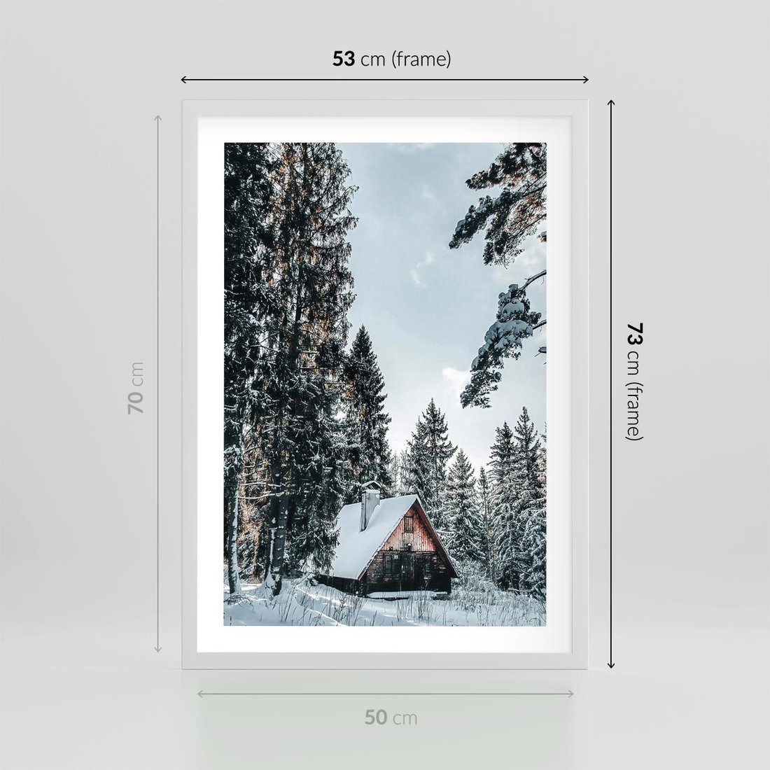 Plakat w ramie 50x70 - Górska Uroda Zimą: Dom w Śniegu - domek w górach, zima - rama biała