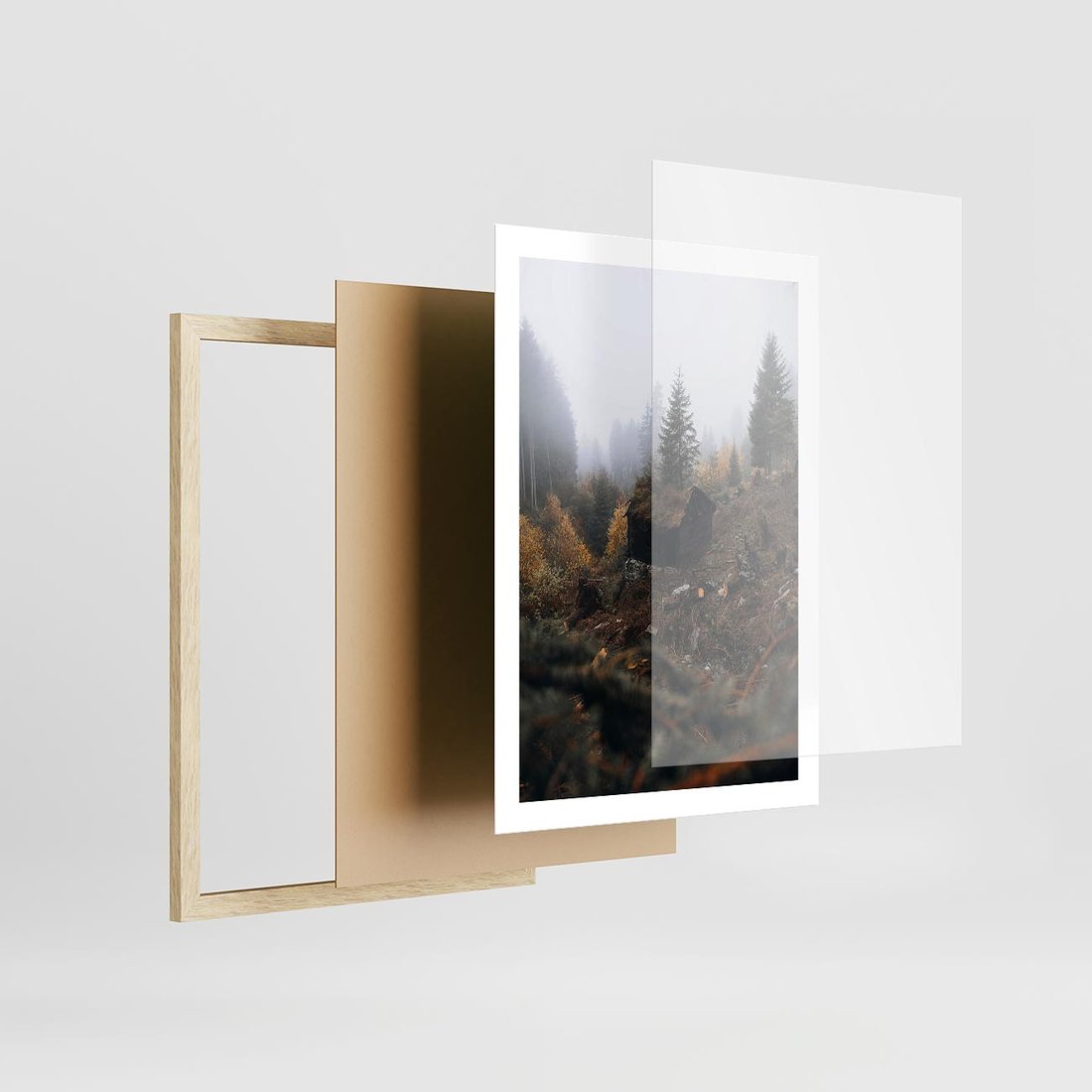 Górski las ukazuje się na obrazie jako mistyczne skupisko drzew, gdzie światło słoneczne filtrowane przez liście tworzy tkaninę cienia i światła. Konary drzew iglastych ukazują się w blasku słońca, a powietrze jest nasycone zapachem świeżości i spokoju, zachęcając do odprężenia w otoczeniu przyrody.