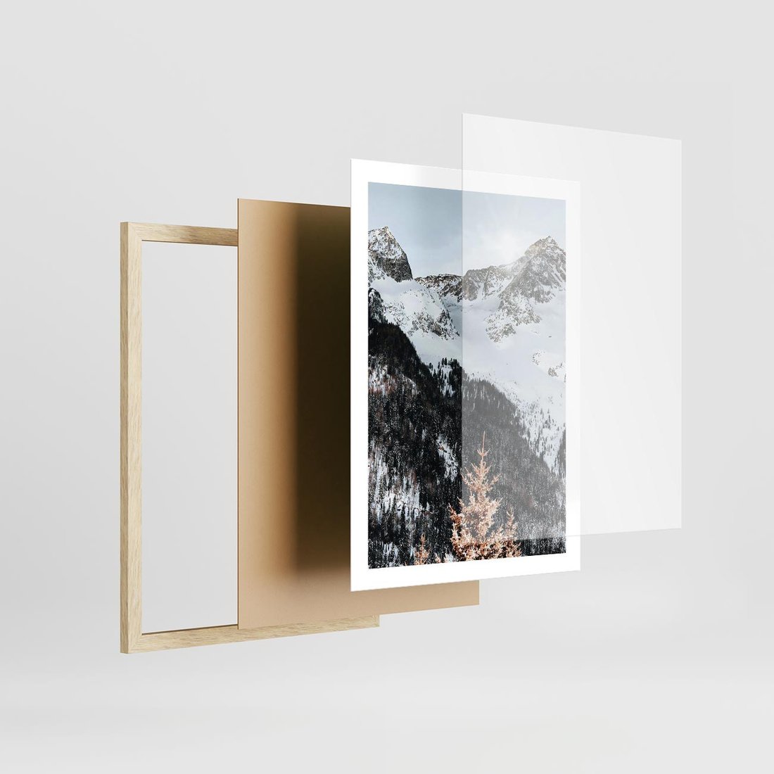 To malowniczy pejzaż górski, gdzie masywne góry pokryte są białym śniegiem, tworząc urokliwy i majestatyczny krajobraz. Obraz doskonale pasuje do wnętrz o charakterze przyrodniczym, rustykalnym lub skandynawskim, nadając im spokój i inspirację naturą.