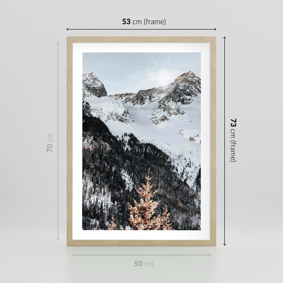 Plakat w ramie 50x70 - Górski Raj - góry, śnieg - rama drewno