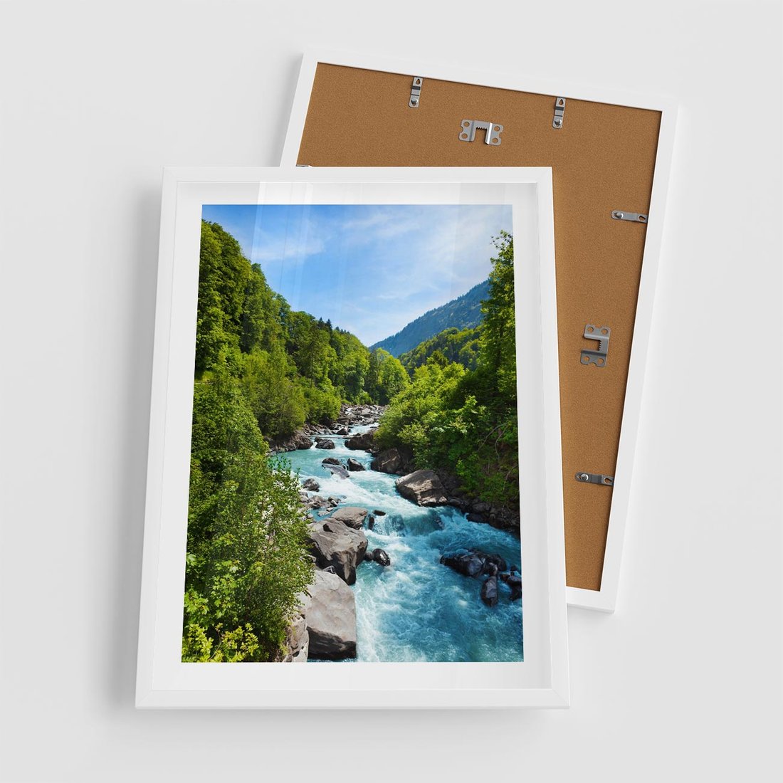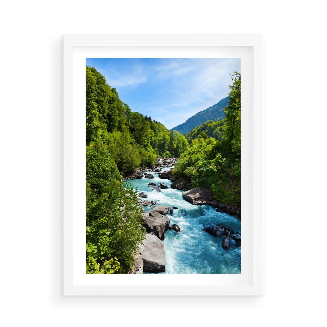 Plakat w ramie 50x70 - Górski strumyk - strumyk, góry - rama biała