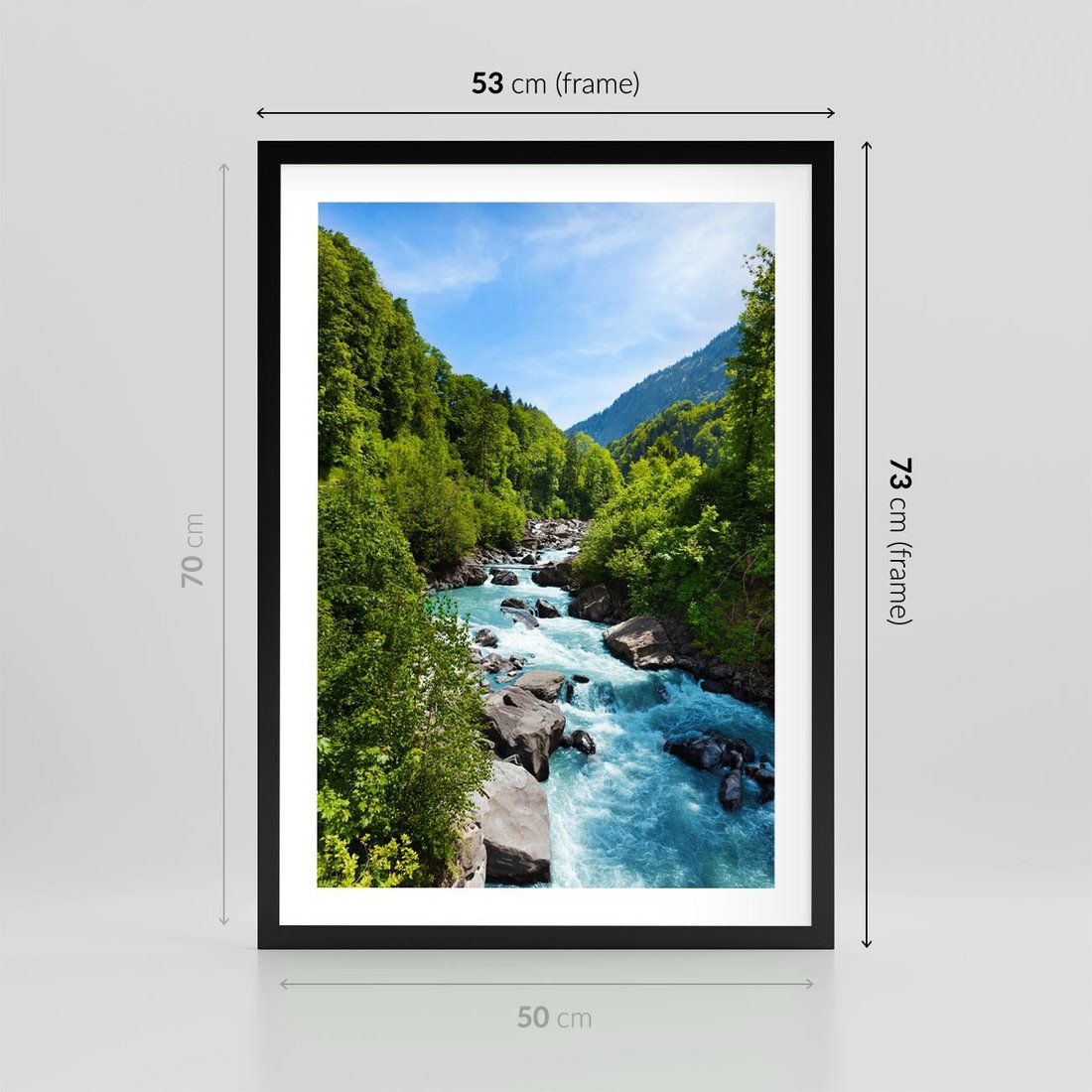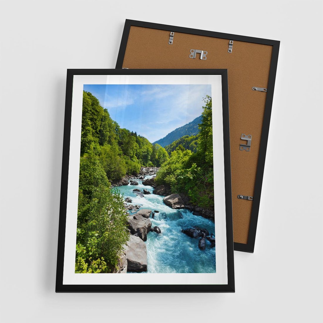Plakat w ramie 50x70 - Górski strumyk - strumyk, góry - rama czarna