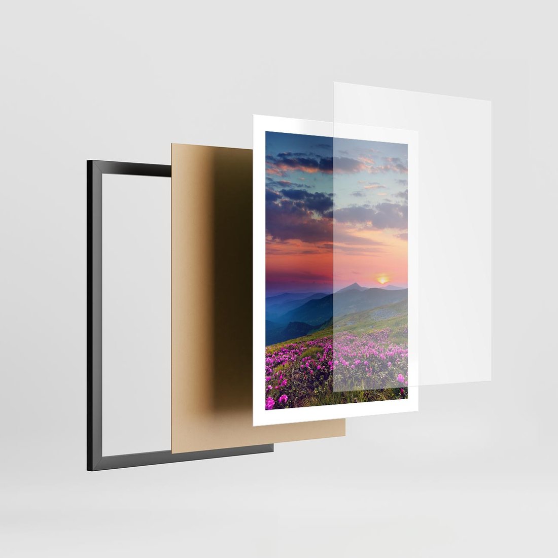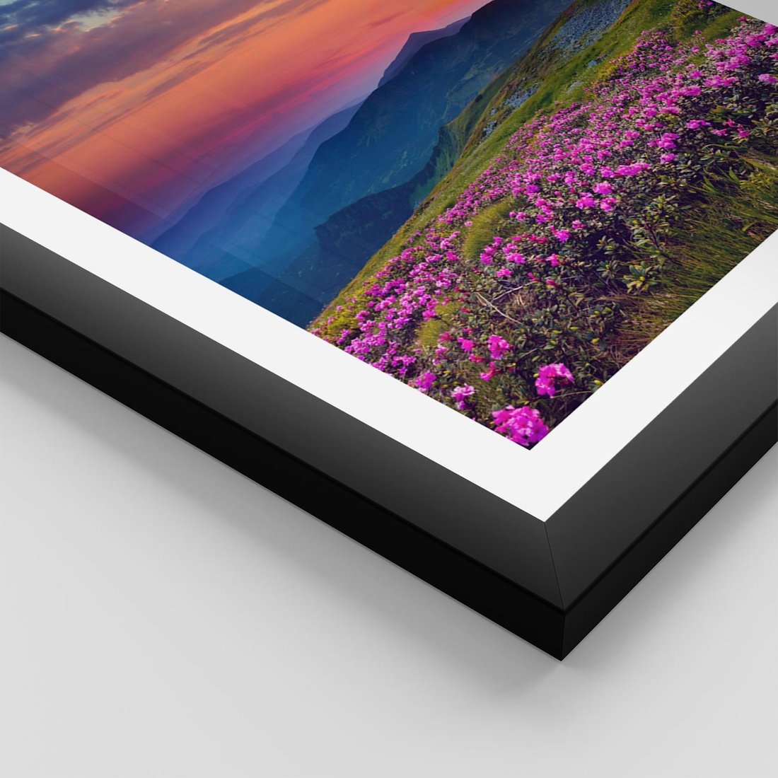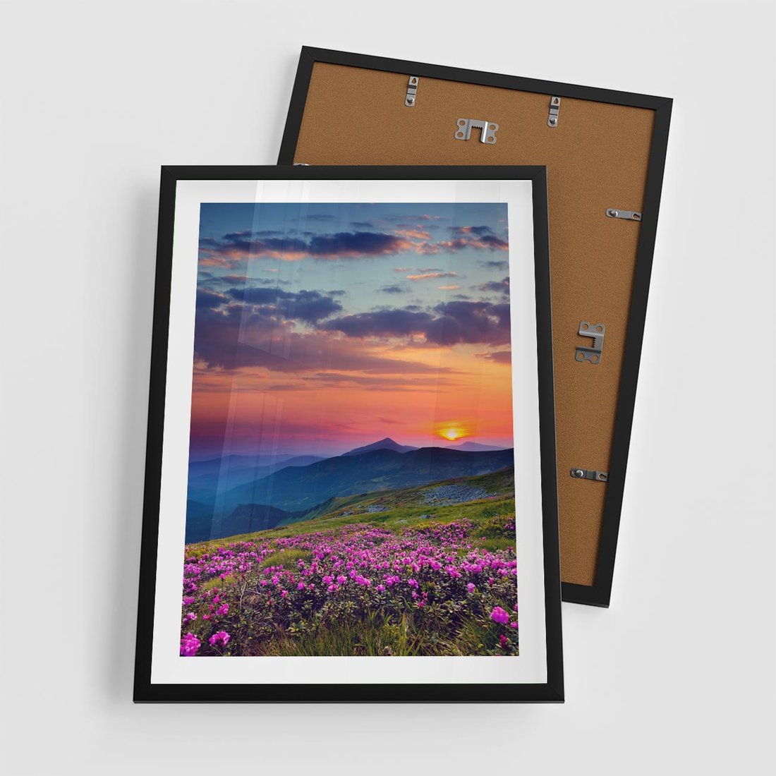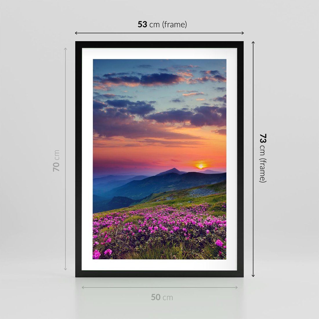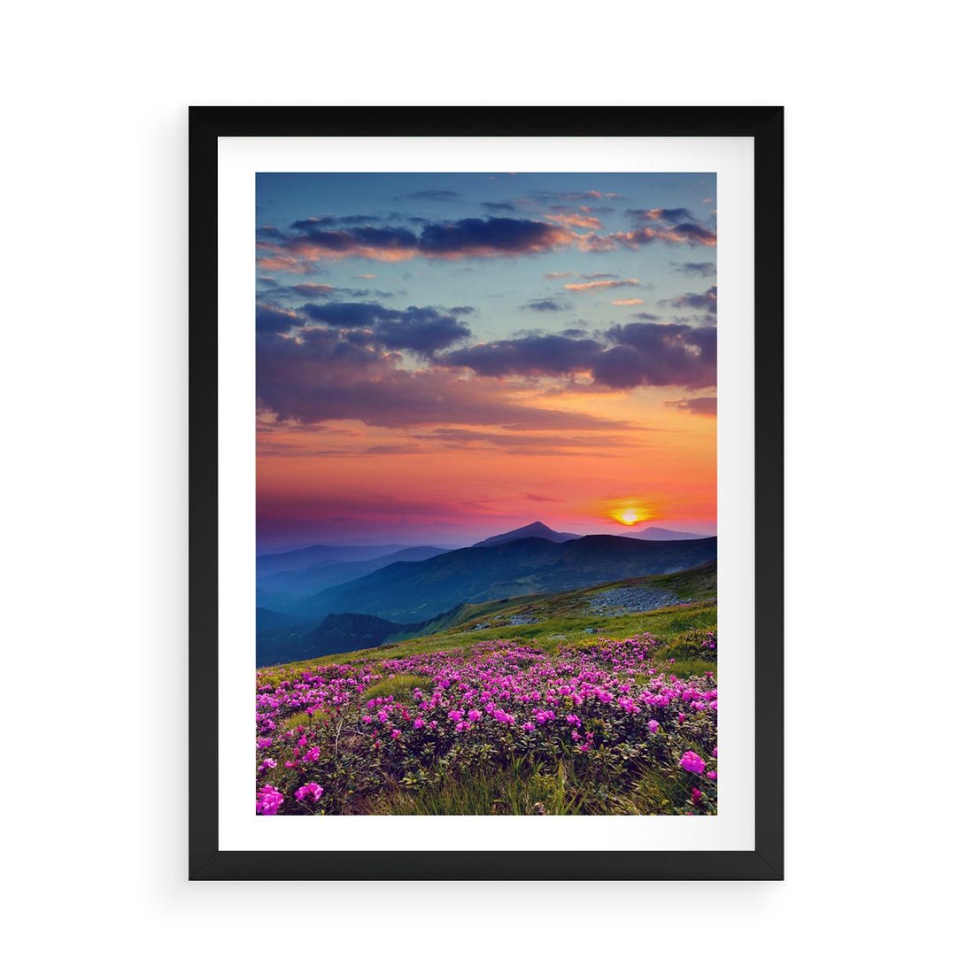 Plakat w ramie 50x70 - Górski Zachód - góry, łąka - rama czarna
